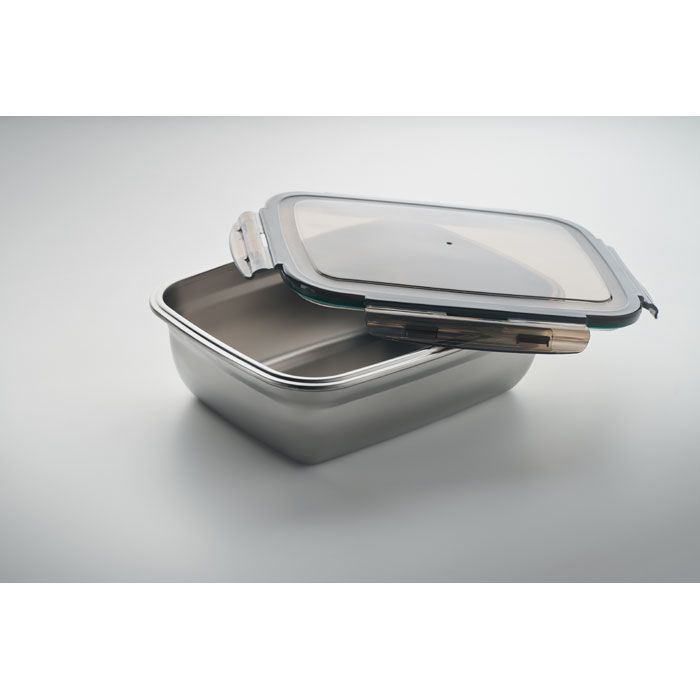 Portapranzo in acciaio inox riciclato con coperchio in PP e chiusura a 4 lati. Incluso separatore. Capacità: 1500 ml.