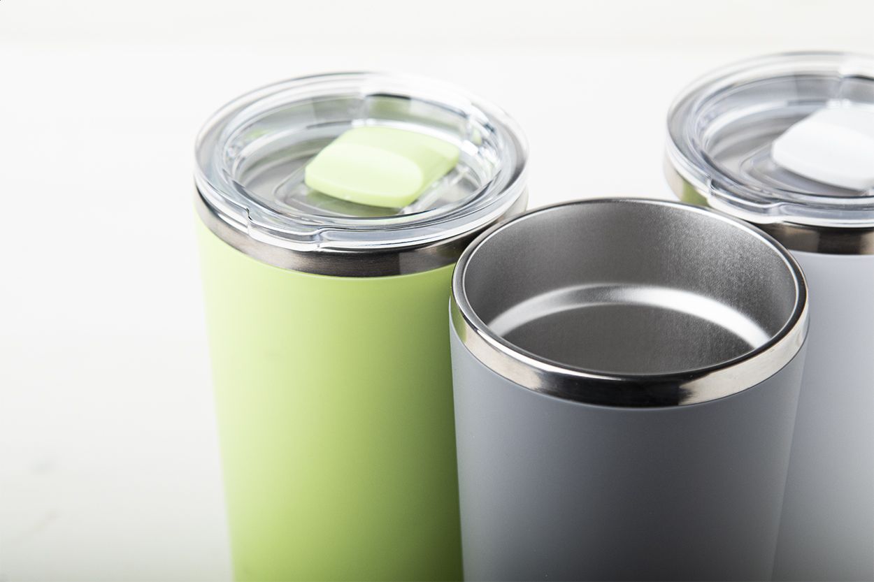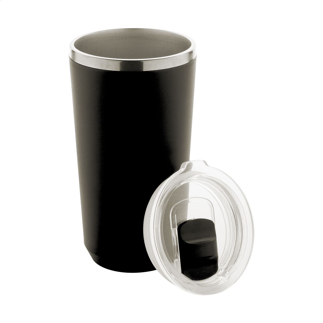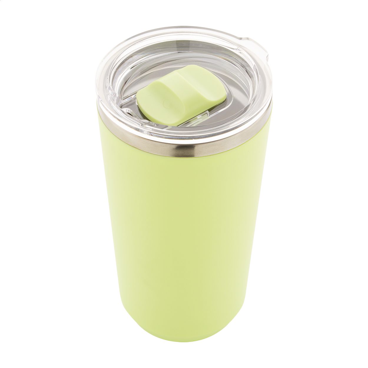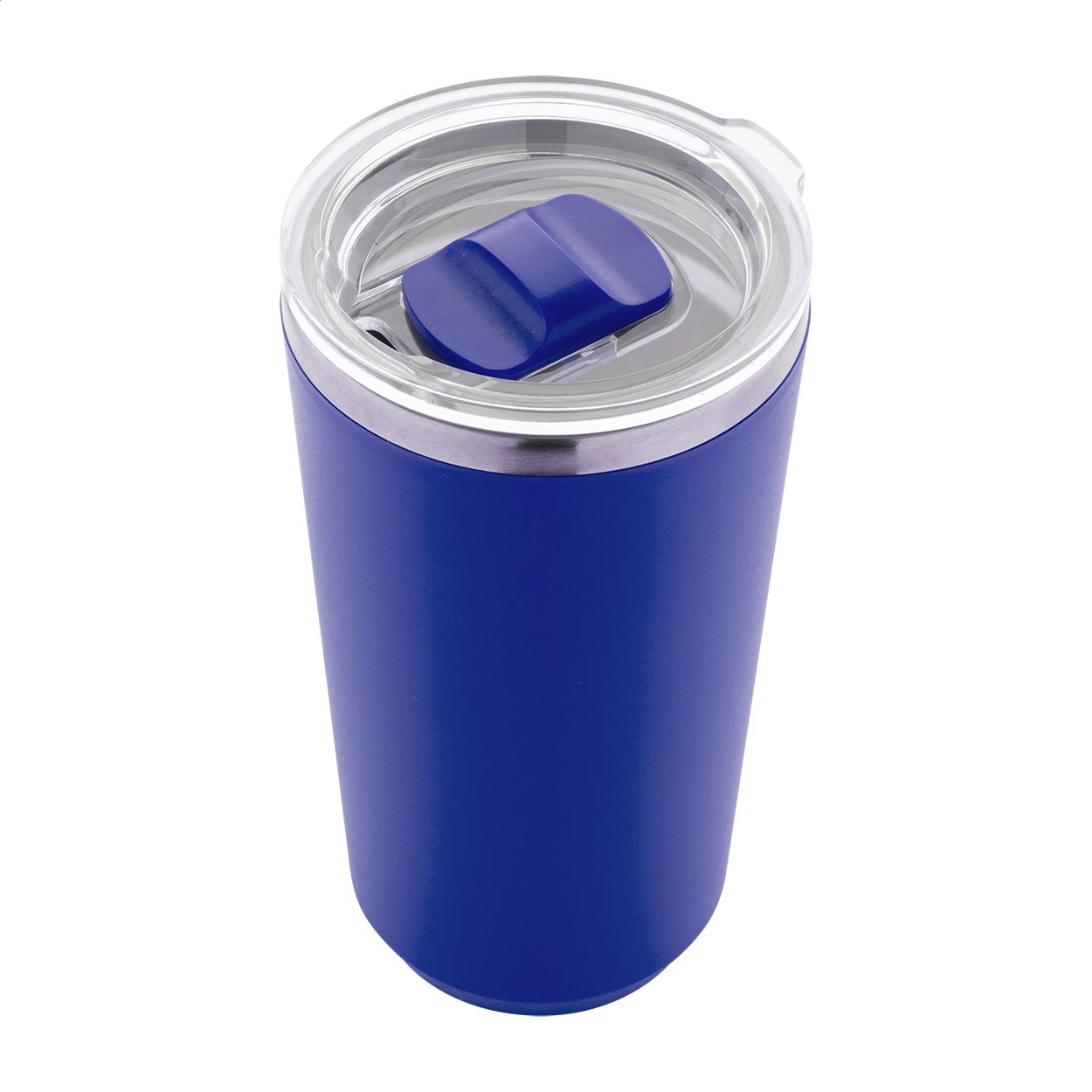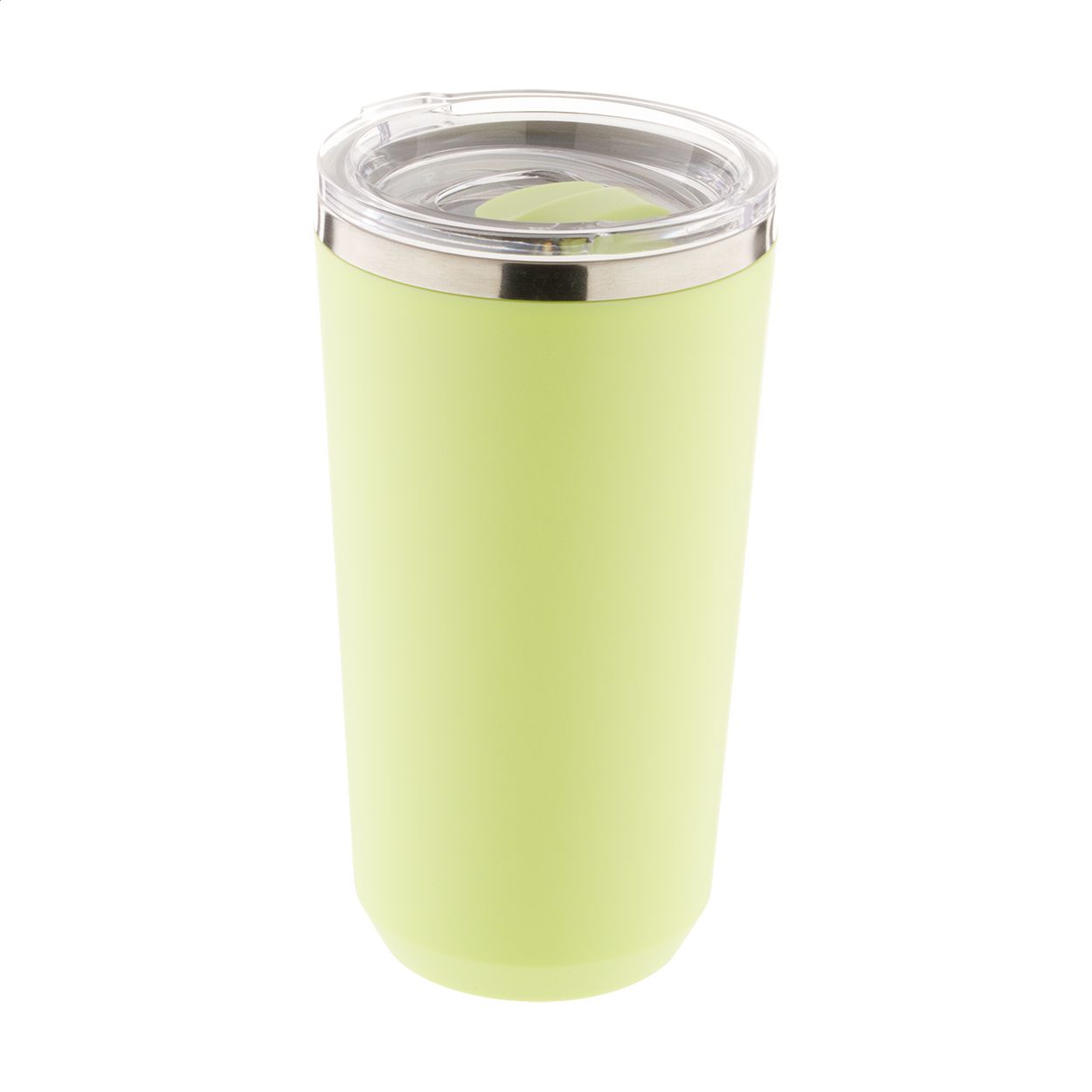 Bicchiere termico da 500ml. in acciaio a doppia parete con tappo erogatore e rivestimento in plastica PP.