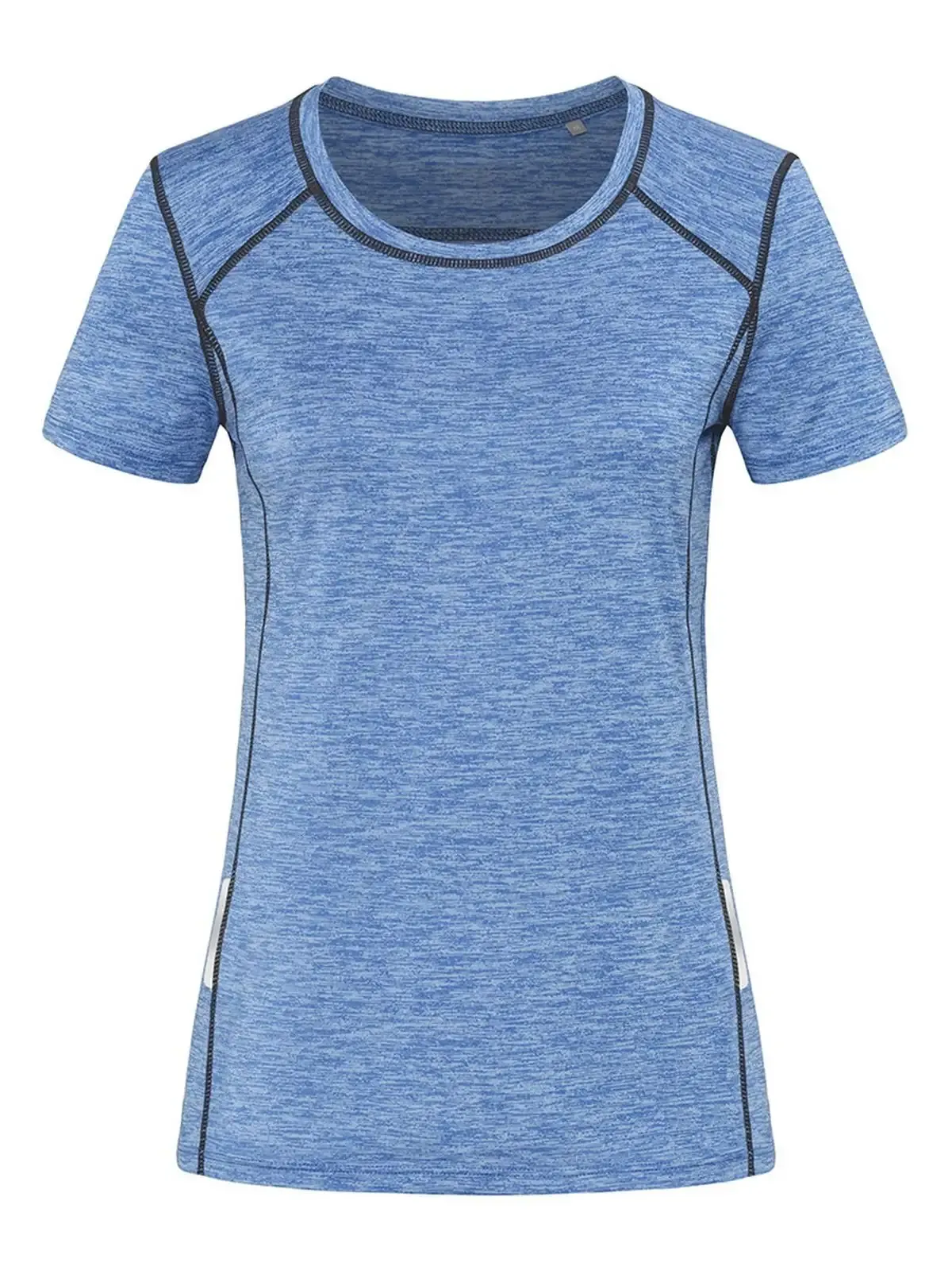 90% poliestere ACTIVE-DRY° (50% riciclato), 10% elastan. T-shirt sportiva da donna, tessuto funzionale eco-compatibile, prodotto con 4 bottiglie di plastica riciclate per ciascuna t-shirt, tessuto super soft ACTIVE-DRY°, effetto mélange, nastro riflettente (davanti e dietro) per un’eccellente visibilità, cuciture flatlock in contrasto cromatico, collo stretto dello stesso materiale, cuciture laterali, etichetta della taglia intessuta nel colletto, etichetta di manutenzione a strappo nella cucitura laterale, lavabile a 40°C.