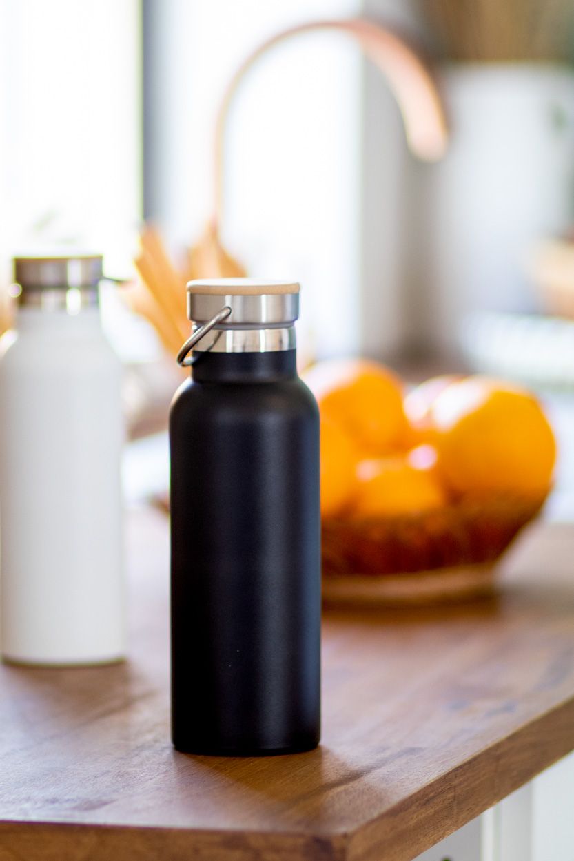 Borraccia termica da 500ml. in acciaio a doppia parete e tappo in bambù.