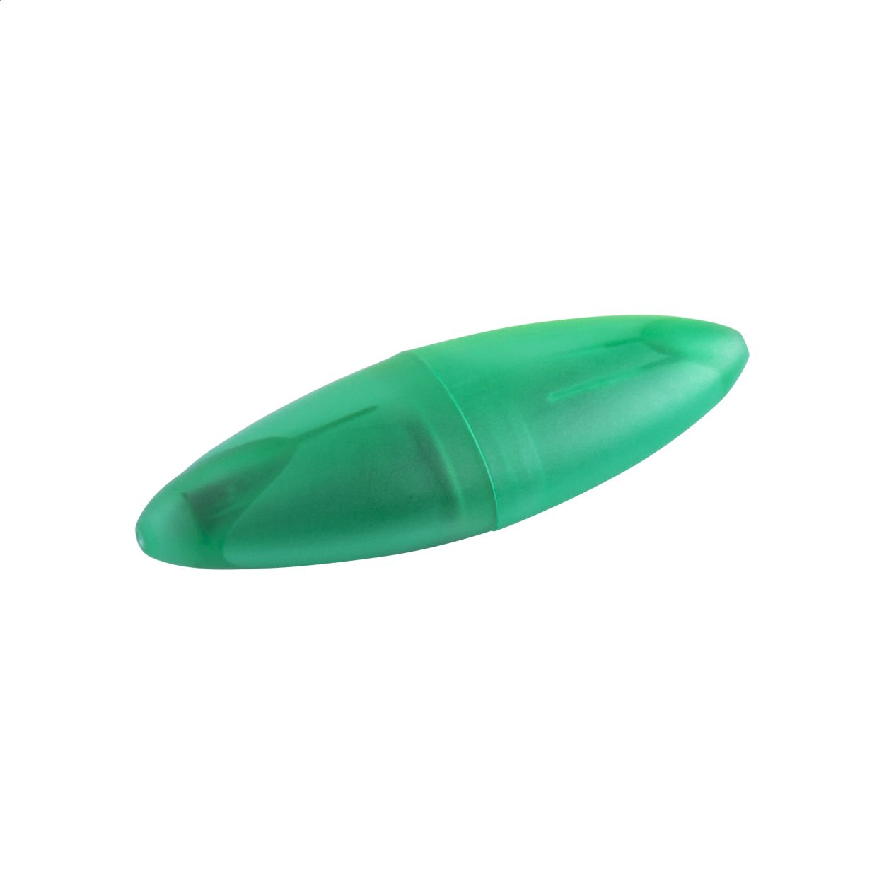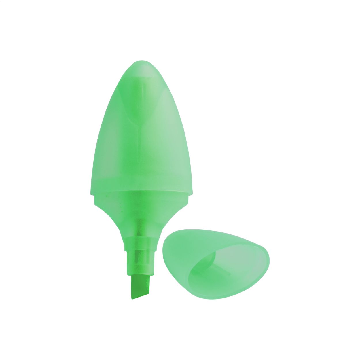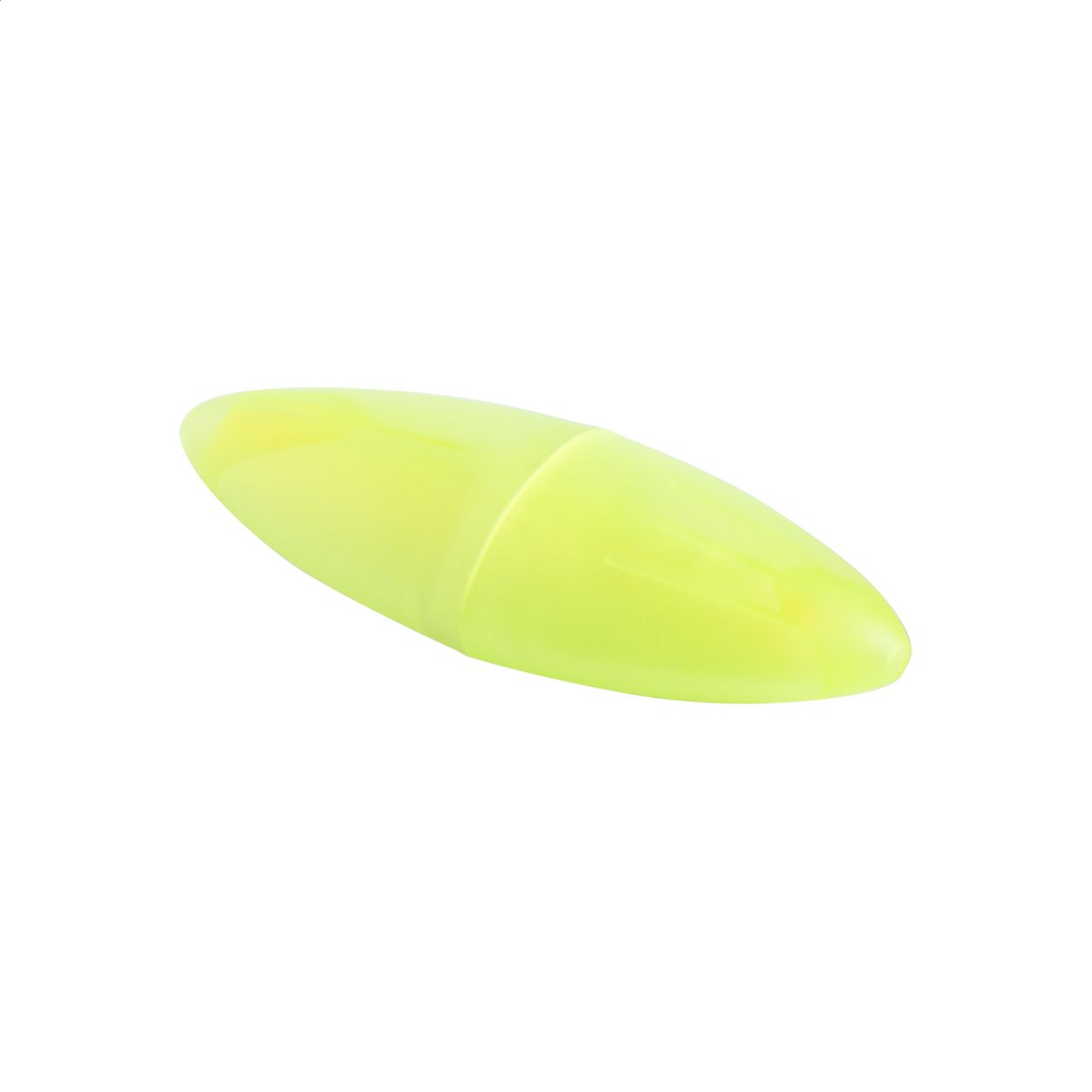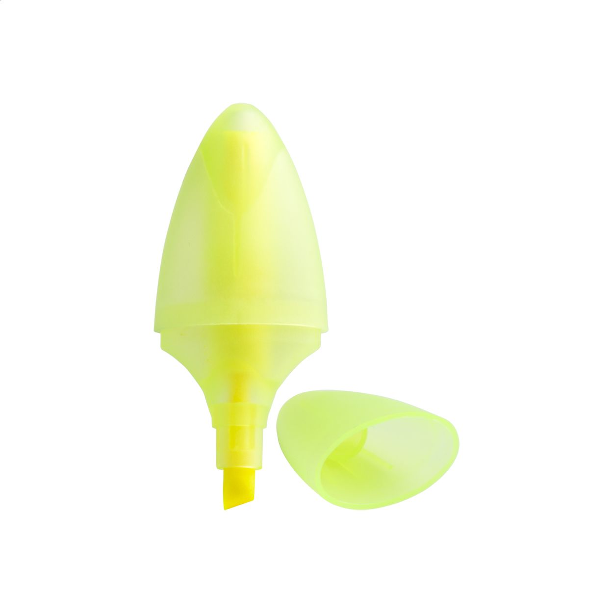 Evidenziatore in plastica traslucida di forma ovale.