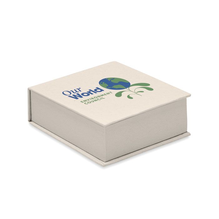 Blocco memo in cartone del latte riciclato con 200 fogli. Tutti realizzati con il 70% di cartone del latte riciclato e il 30% di carta riciclata.