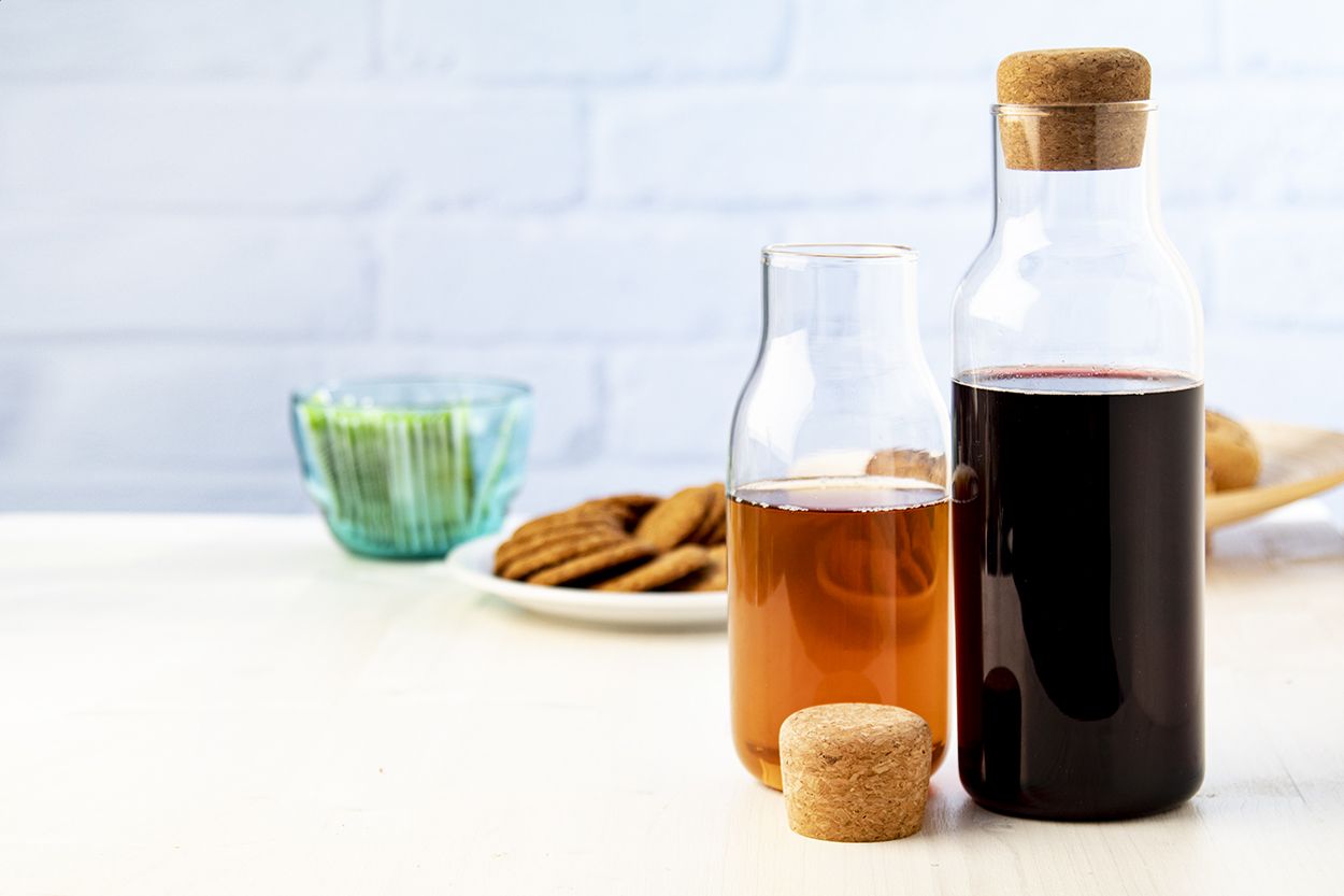 Caraffa per acqua in vetro borosilicato da 600 ml. e tappo in sughero. Adatta sia per bevande fredde che calde, nonché come bottiglia decanter.