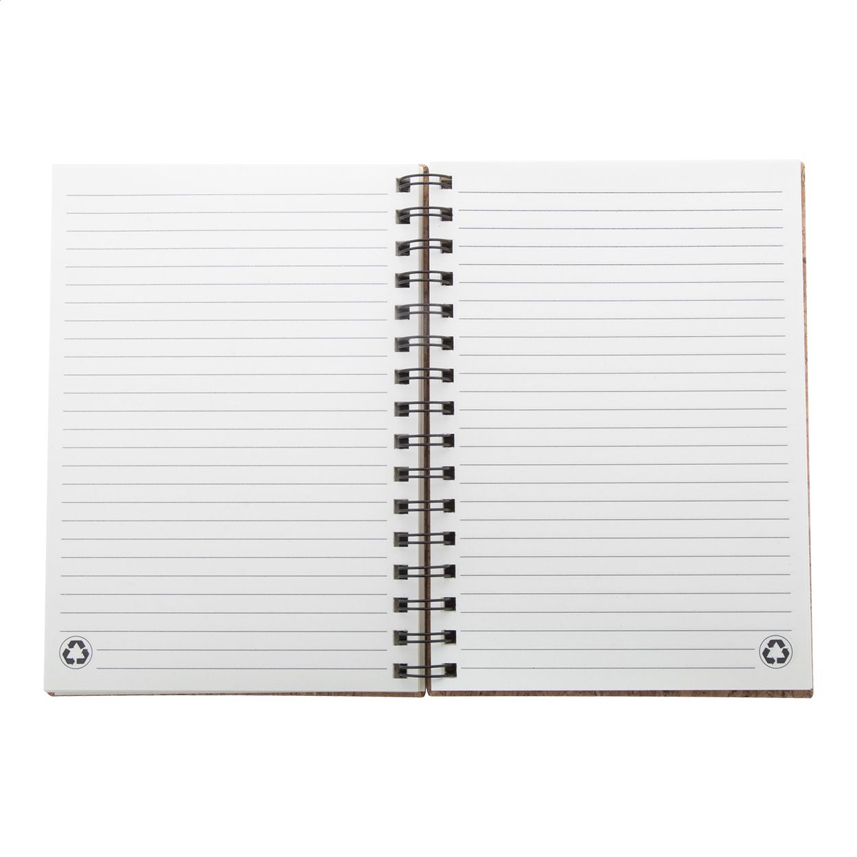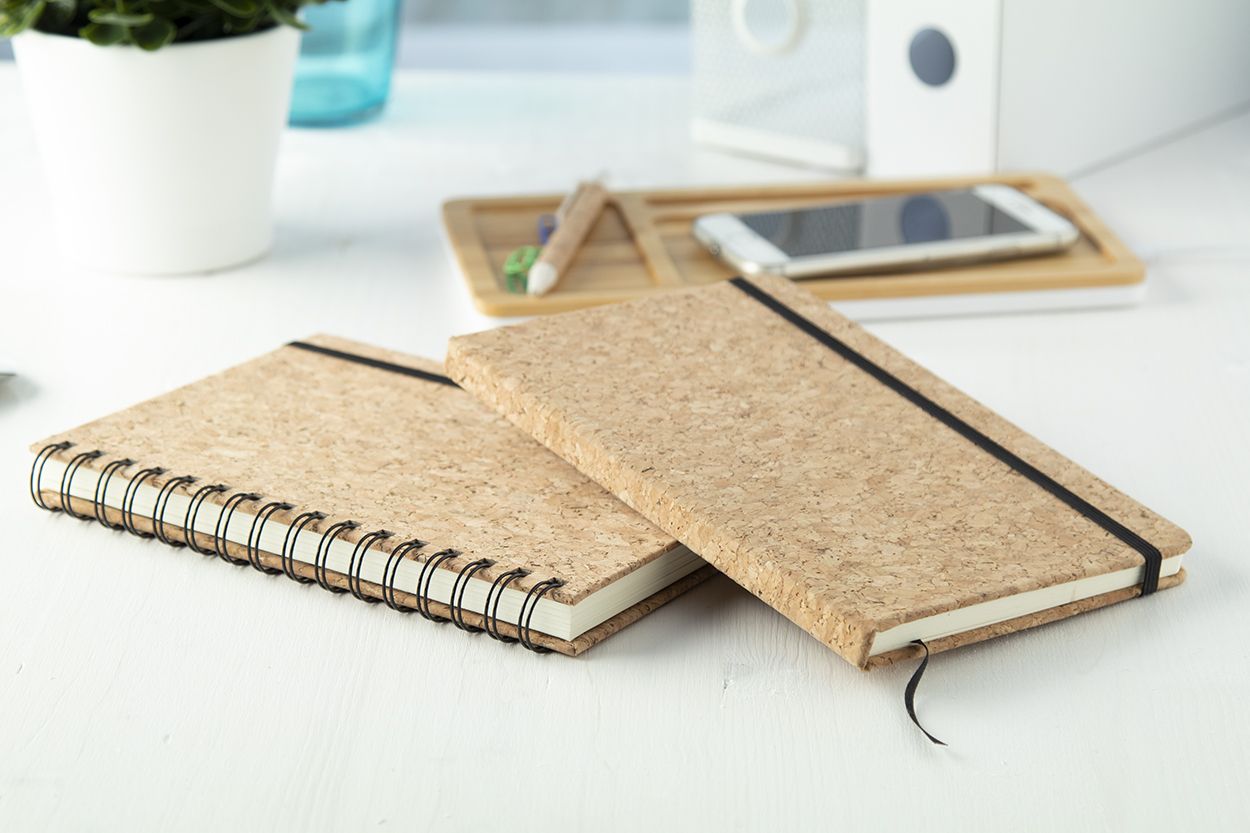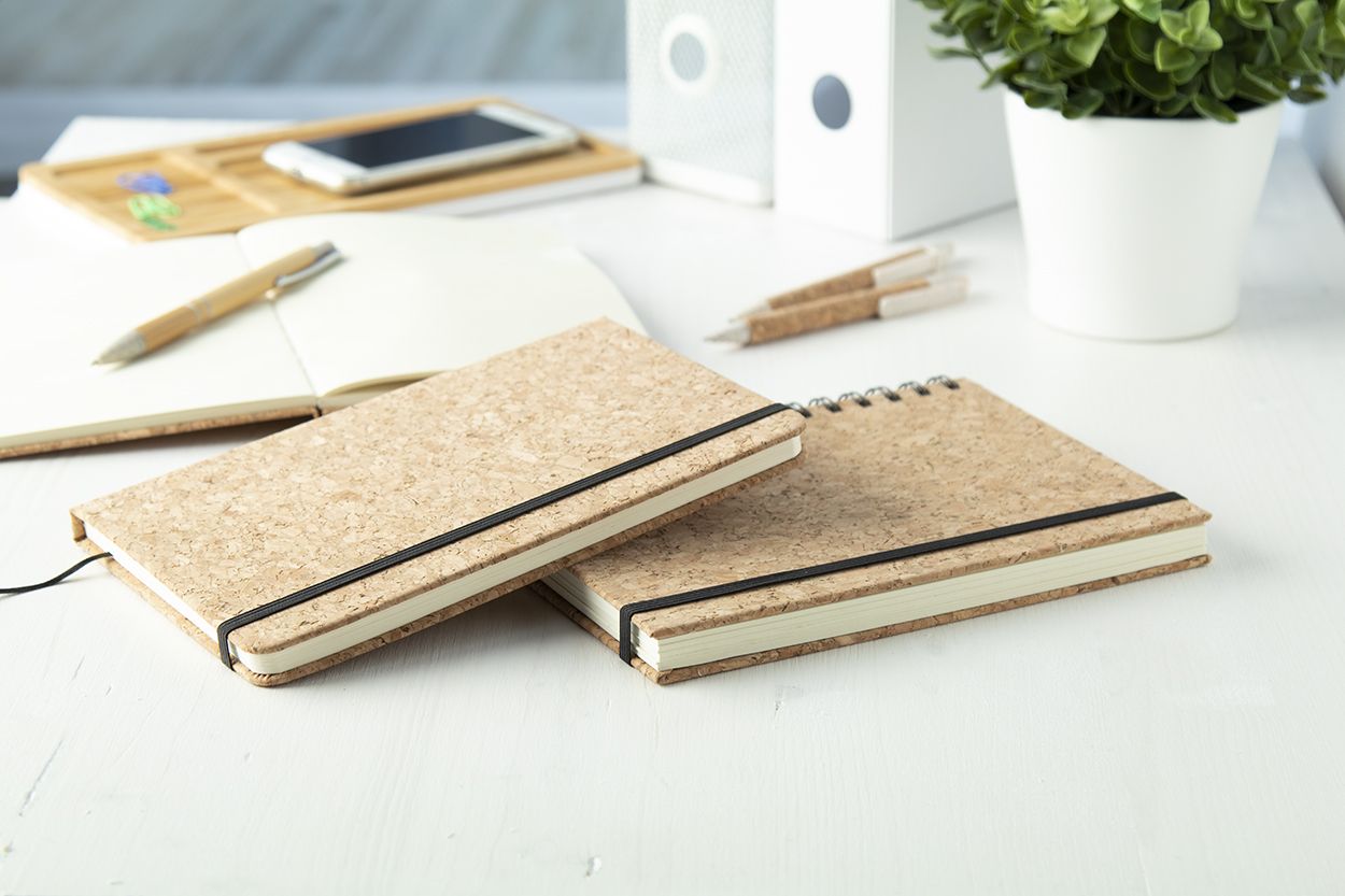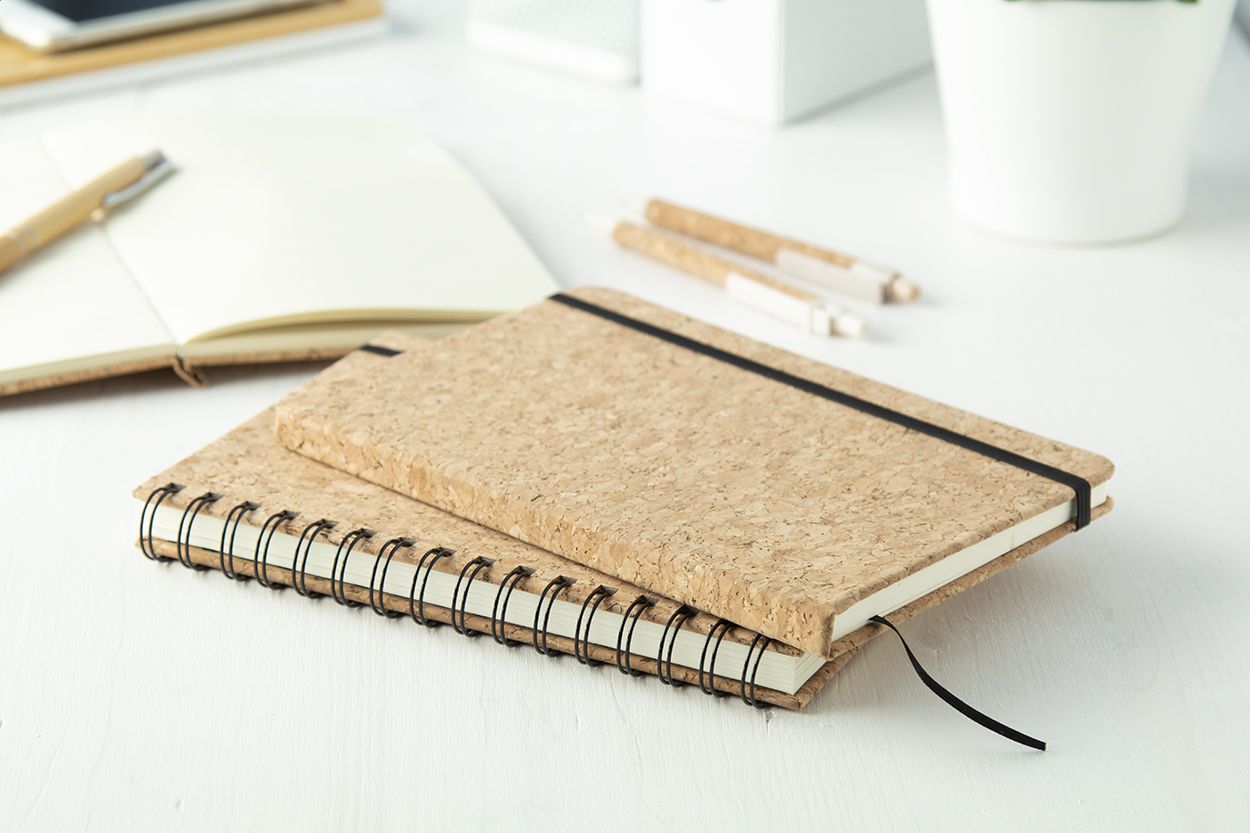Quaderno a spirale formato A5, con 100 fogli a righe e copertina in sughero naturale.