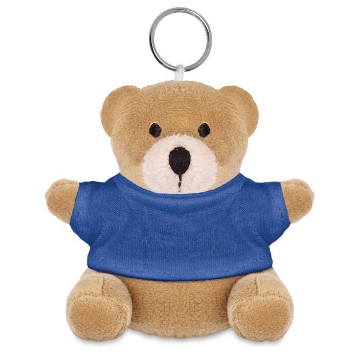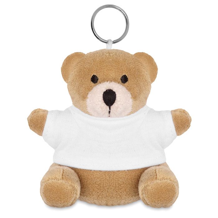 Orsetto peluche con portachiavi e t-shirt in 100% cotone.