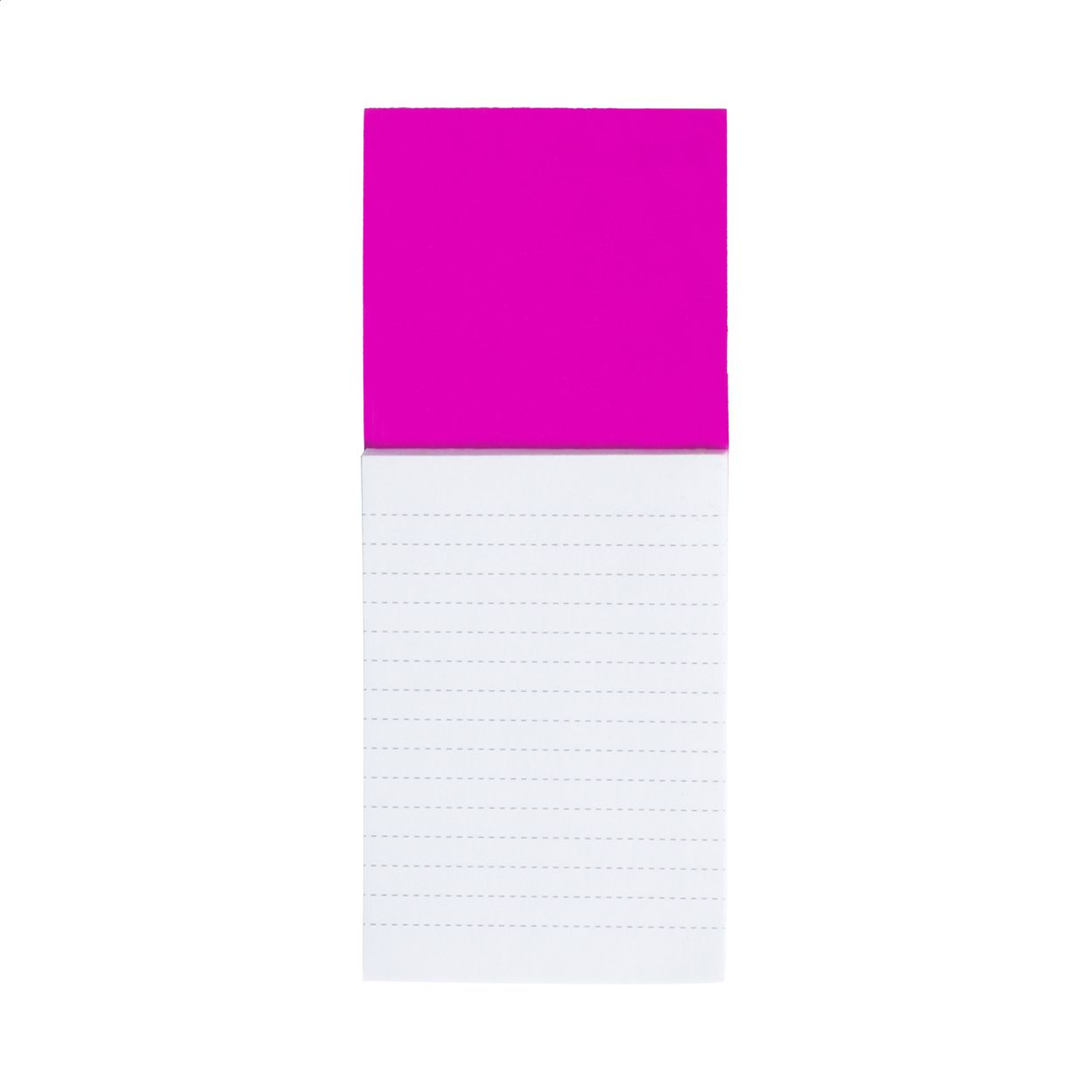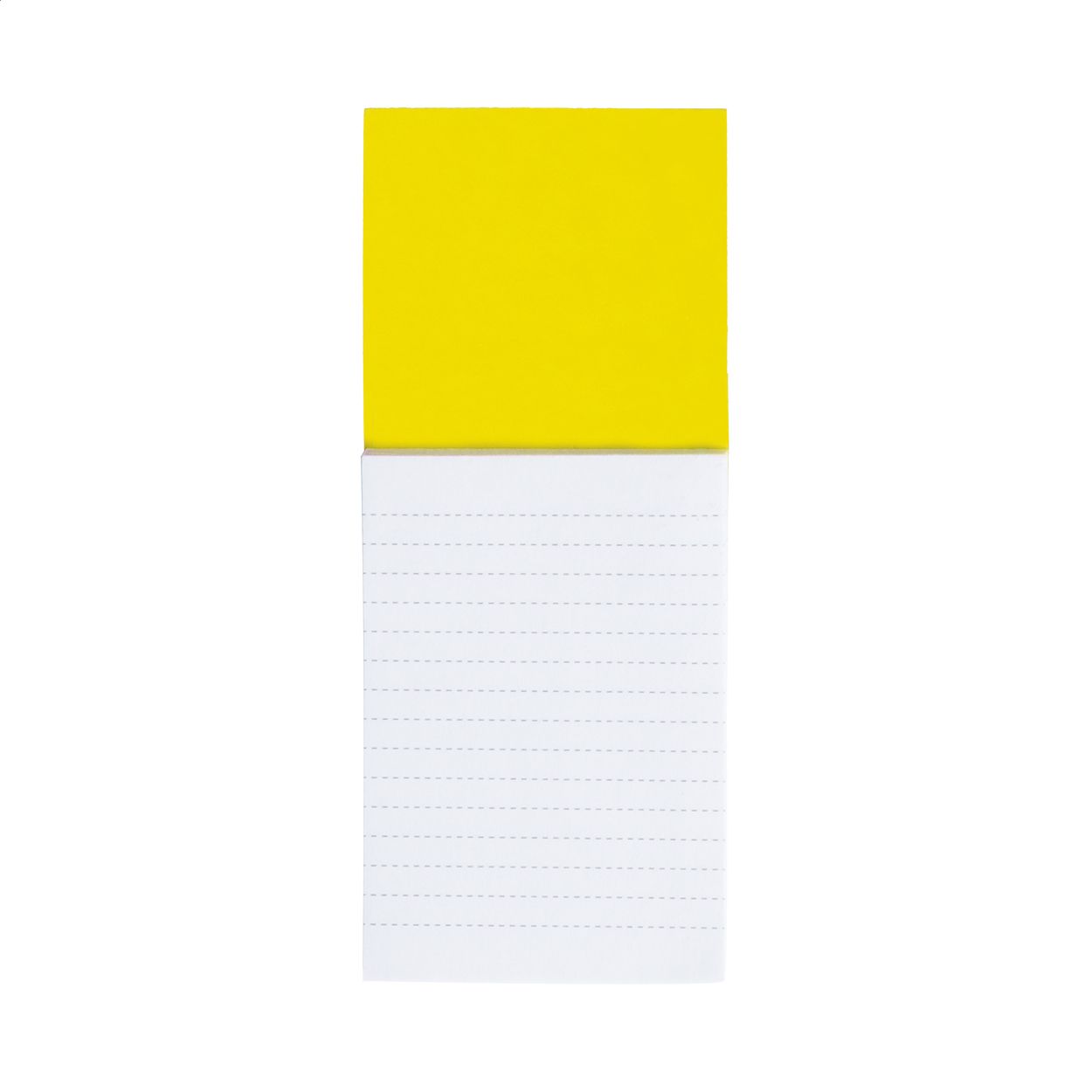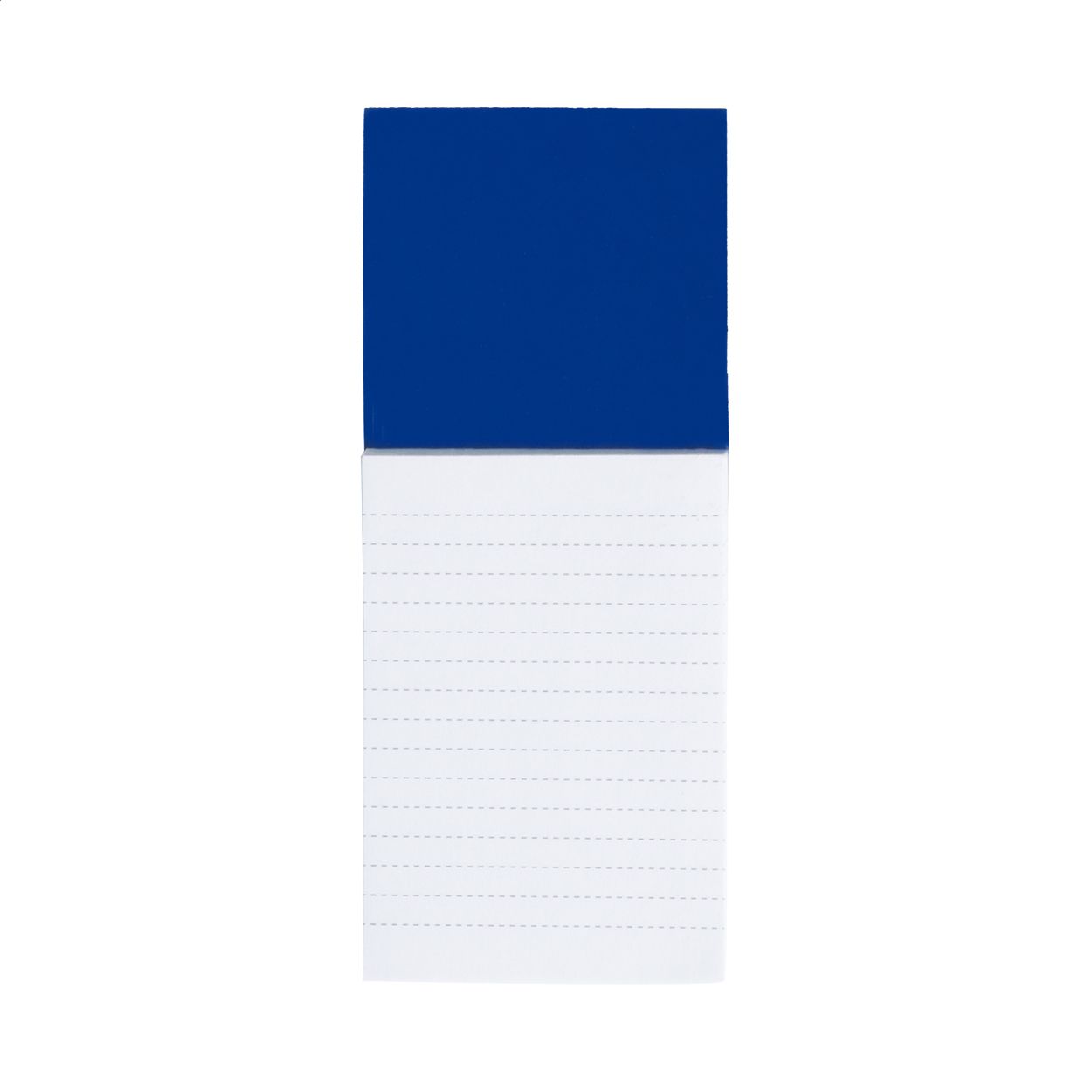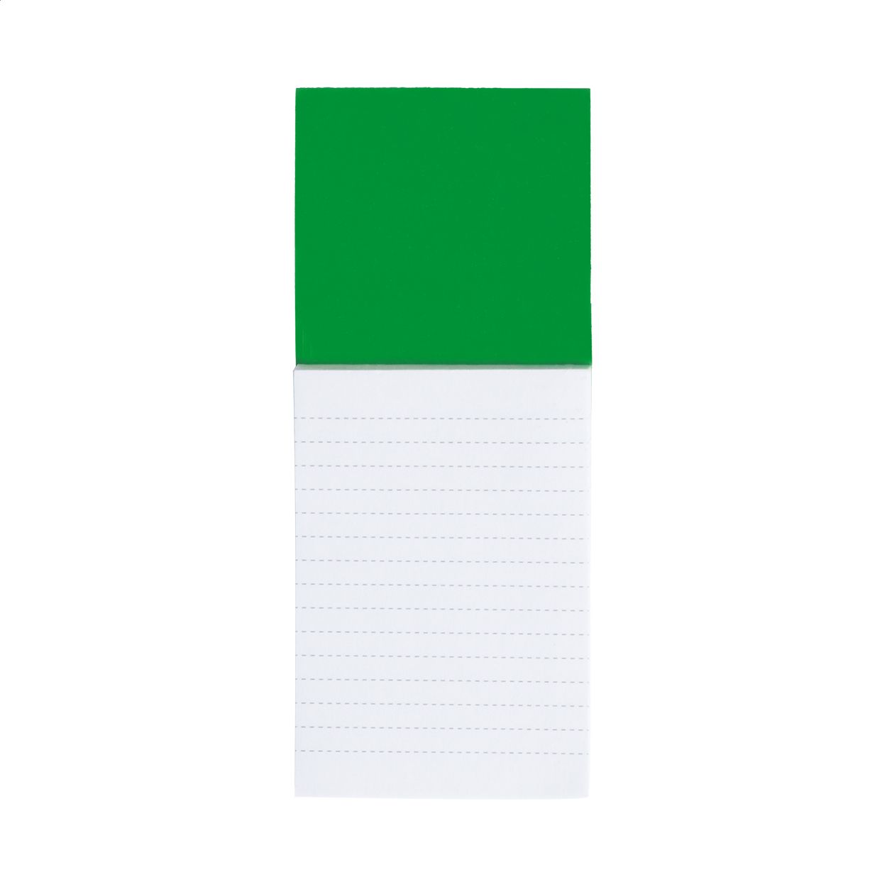 Magnete frigorifero colorato con blocco note da 40 fogli.