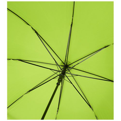 Ombrello ad apertura automatica con stoffa in poliestere pongee e PET riciclato. Robusto albero metallico e telaio di alta qualità con stecche in fibra di vetro per garantire flessibilità in condizioni di vento. Insieme all'impugnatura in legno, alle punte e alla stoffa in poliestere pongee e PET riciclato offre una scelta più sostenibile. Disponibile in una grande varietà di colori contemporanei con un'ampia area di decorazione su ogni pannello.