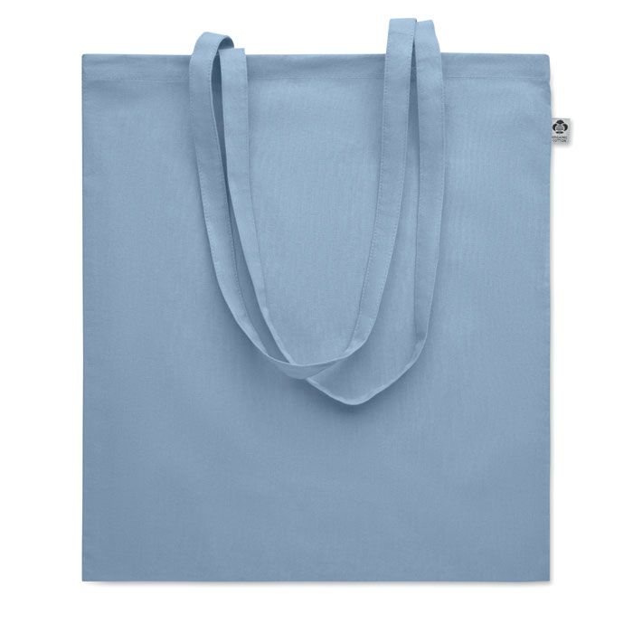 Shopper in cotone biologico con manici lunghi. 180 gr/m². Prodotta secondo uno standard certificato per l'uso di sostanze nocive nel settore tessile.