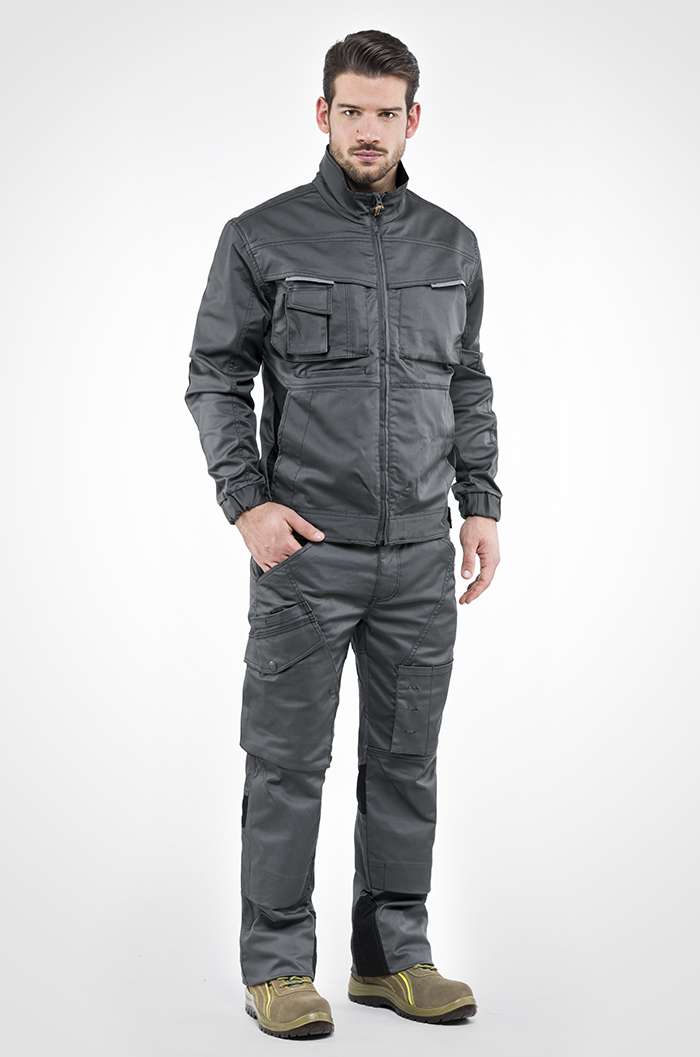 65% poliestere, 32% cotone twill, 3% elastam, 250 g/m2, taglie: s m l xl xxl 3xl, dpi 1a categoria, stretch, chiusura con cerniera, 2 tasche principali, 2 tasche sulla gamba dx, di cui: 1 con bottone, 1 con chiusura a clip, 2 tasche sulla gamba sinistra, alloggiamento per ginocchiera, conforme uni en iso 13688, (testato per la protezione contro le lesioni meccaniche superficiali)