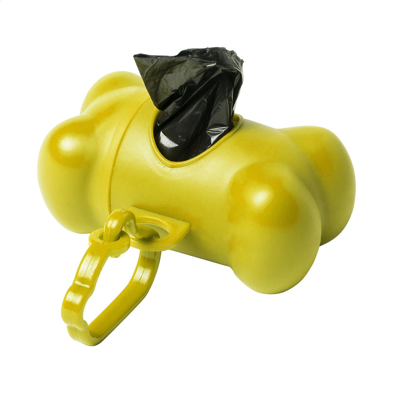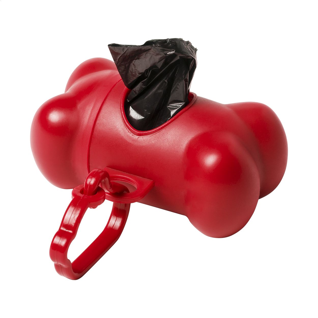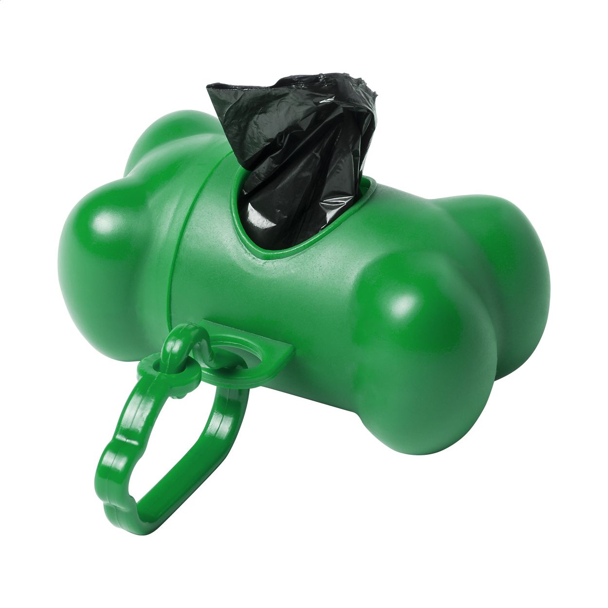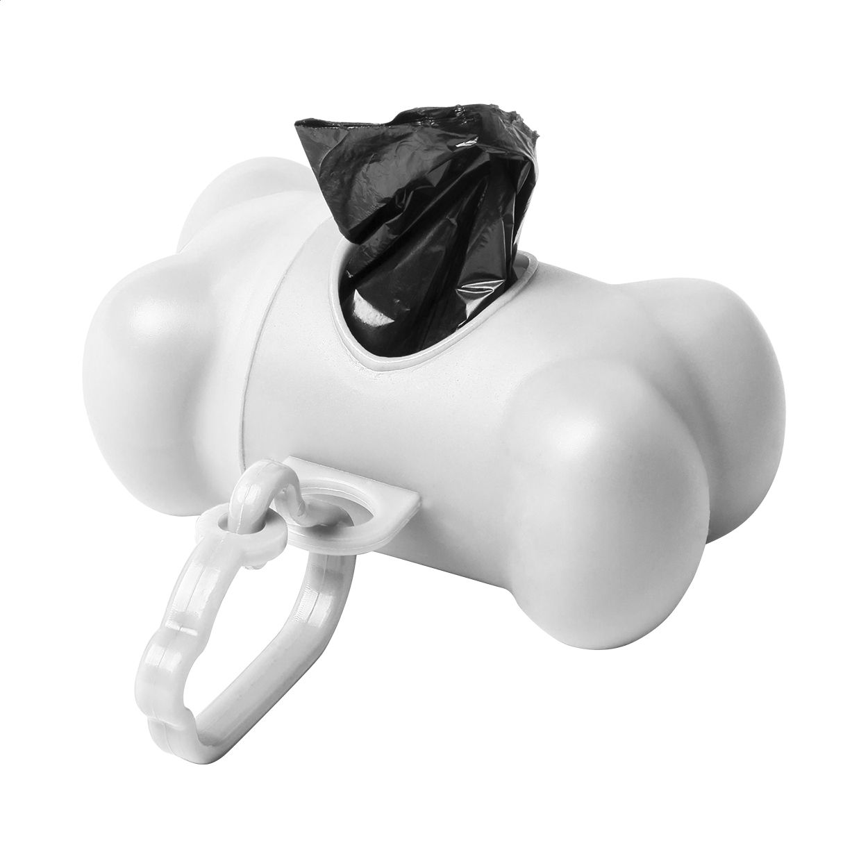 Distributore di sacchetti per deiezioni canine a forma di osso in plastica con moschettone. 15 sacchetti biodegradabili inclusi.