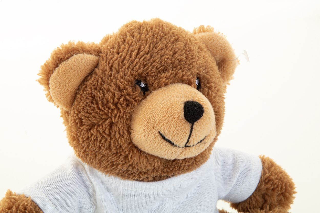 Orsetto di peluche in RPET con maglietta stampabile in poliestere RPET. Gli ordini senza stampa saranno spediti con la maglietta separata.