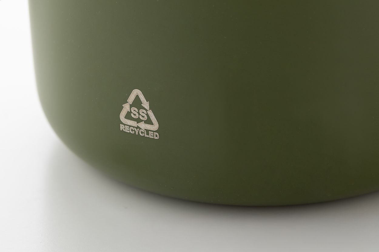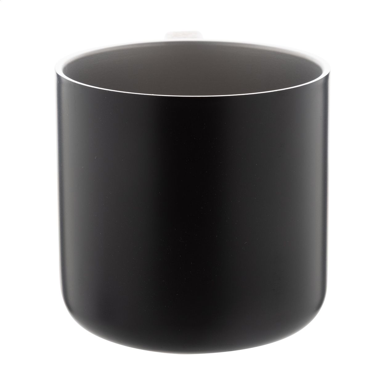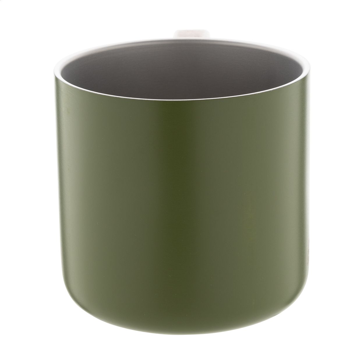 Tazza mug a doppia parete in acciaio riciclato con manico in legno e capacità di 350 ml.