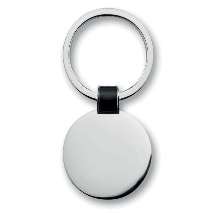 Portachiavi circolare in metallo rivestito di nickel lucido.
