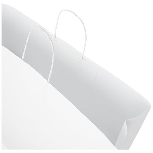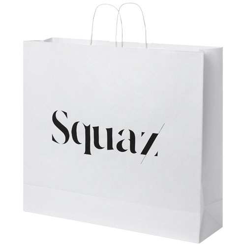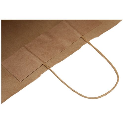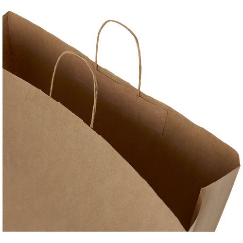 Sacchetto in carta kraft XXL (49,5 × 14 × 44 cm) con manici intrecciati, realizzato in carta proveniente da fonti responsabili (bianco 100 g/m², marrone 90 g/m²). Questo sacchetto è una soluzione di imballaggio resistente con molto spazio per trasportare una vasta gamma di oggetti. L’aspetto naturale e rustico della carta kraft aggiunge un tocco elegante a qualsiasi occasione. Perfetto per lo shopping, i regali o gli eventi, è un’ottima alternativa alle borse di plastica. Prodotto in Europa.