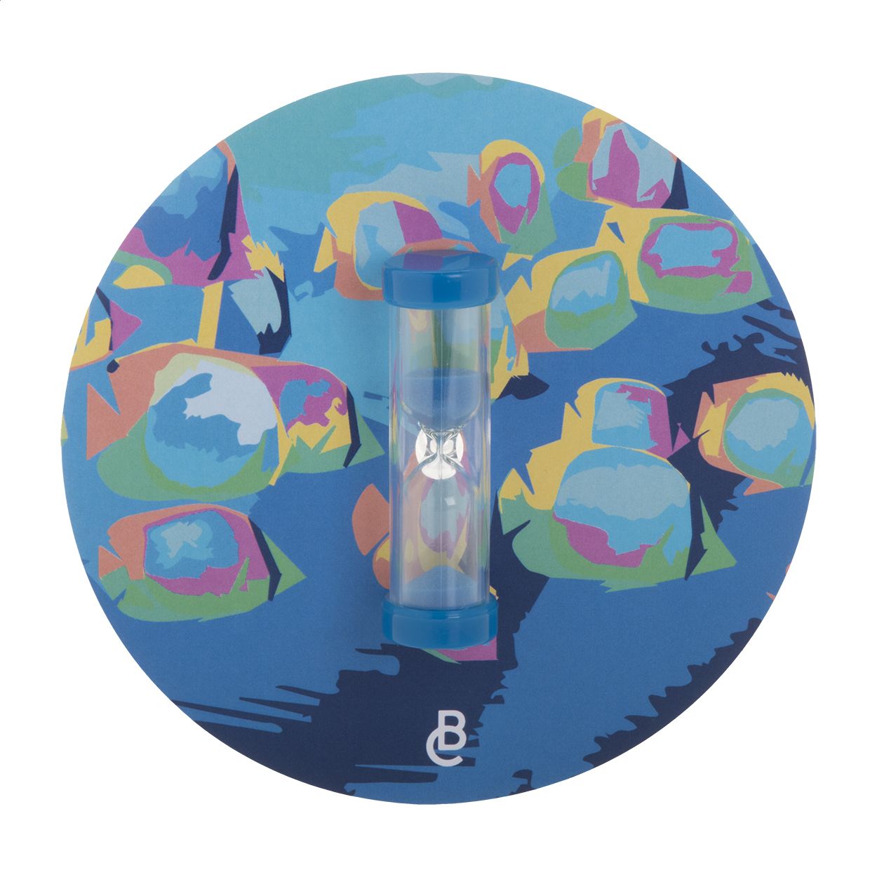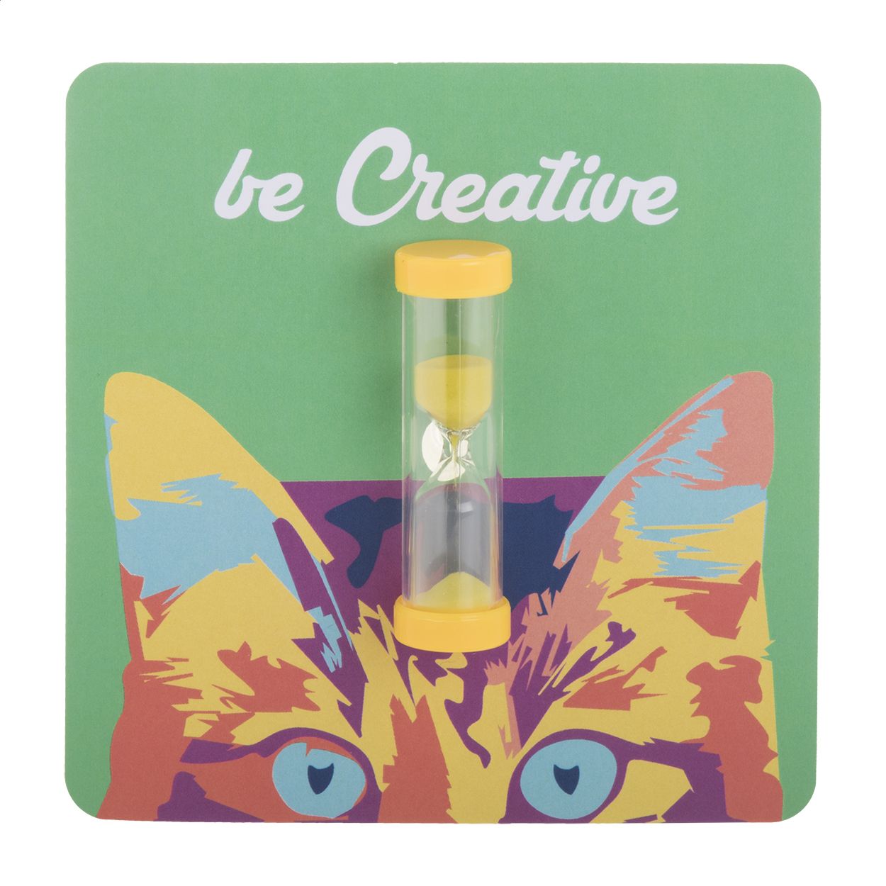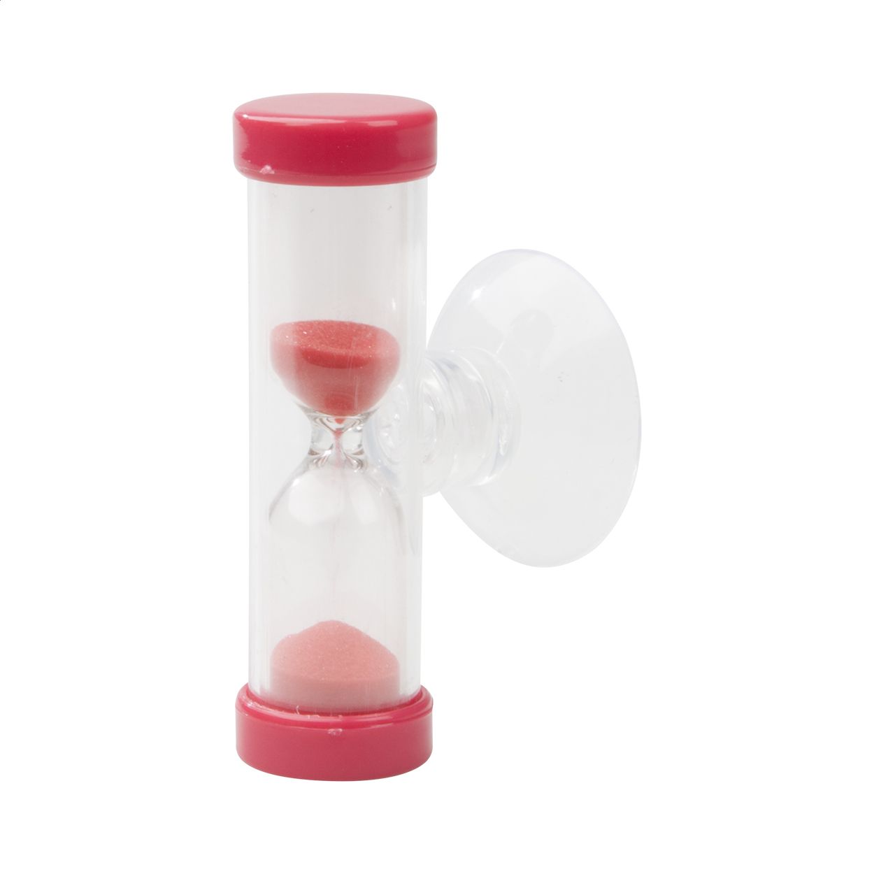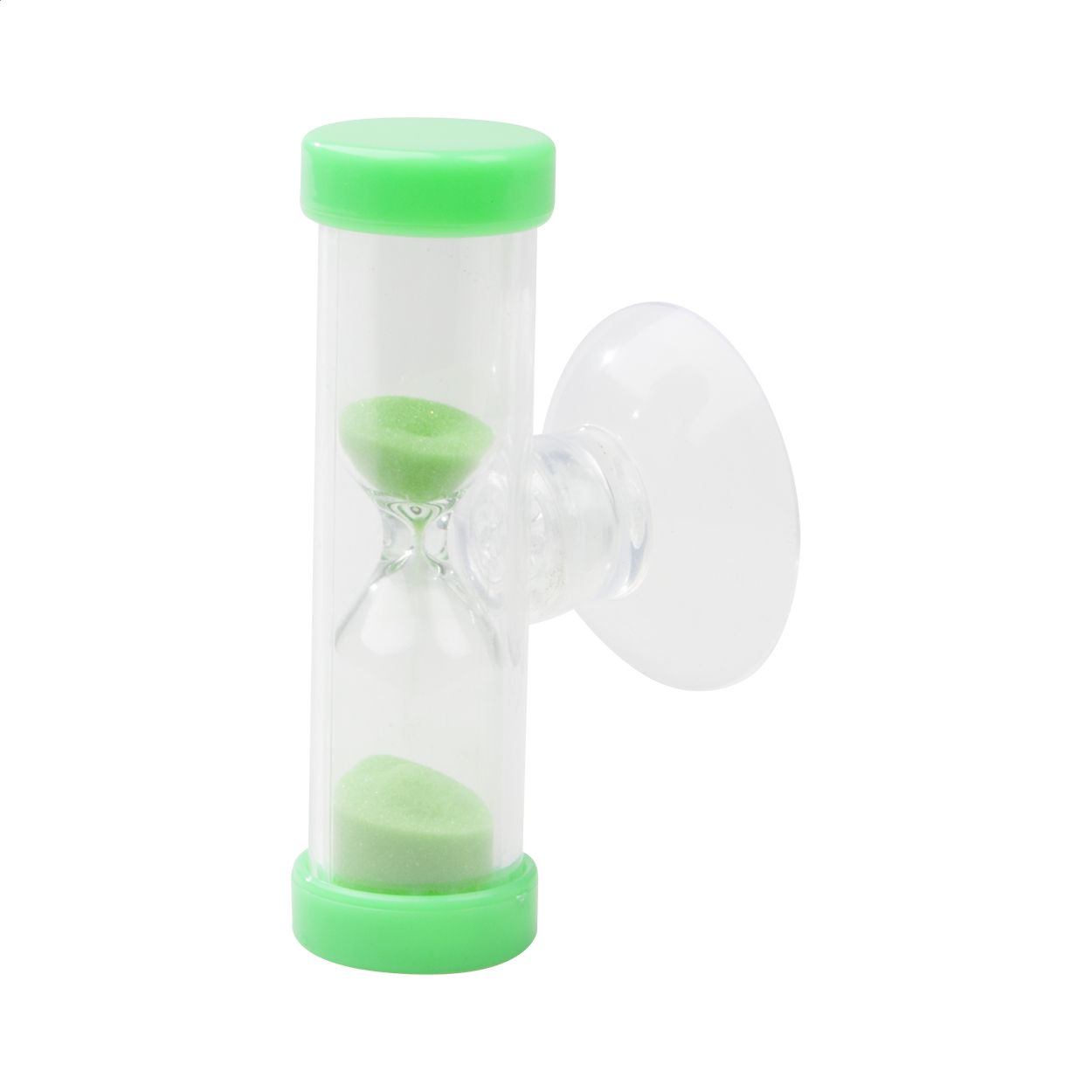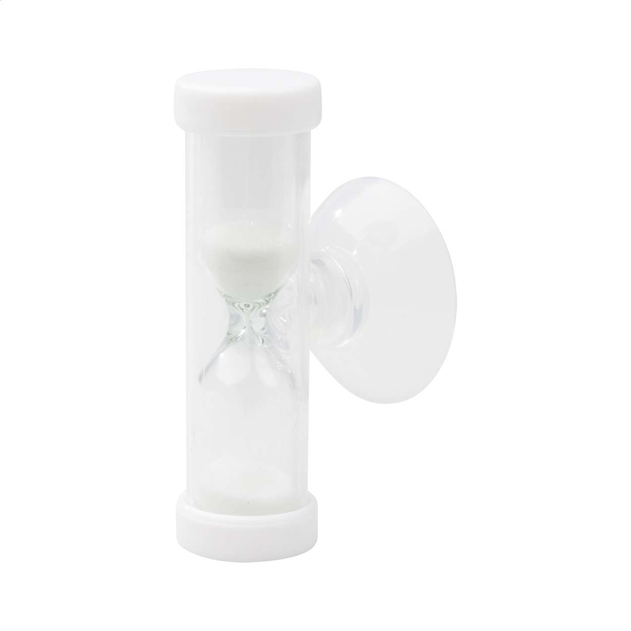 Clessidra in plastica da 3 minuti con tappo e sabbia in colore coordinato e supporto a ventosa. Personalizzala con l'inserto in carta!
