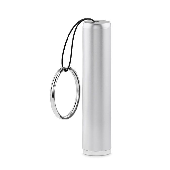 Torcia a LED in ABS. Con anello portachiavi e cinturino. 3 batterie AG3 incluse. Il fusto include una luce per illuminare il logo inciso.