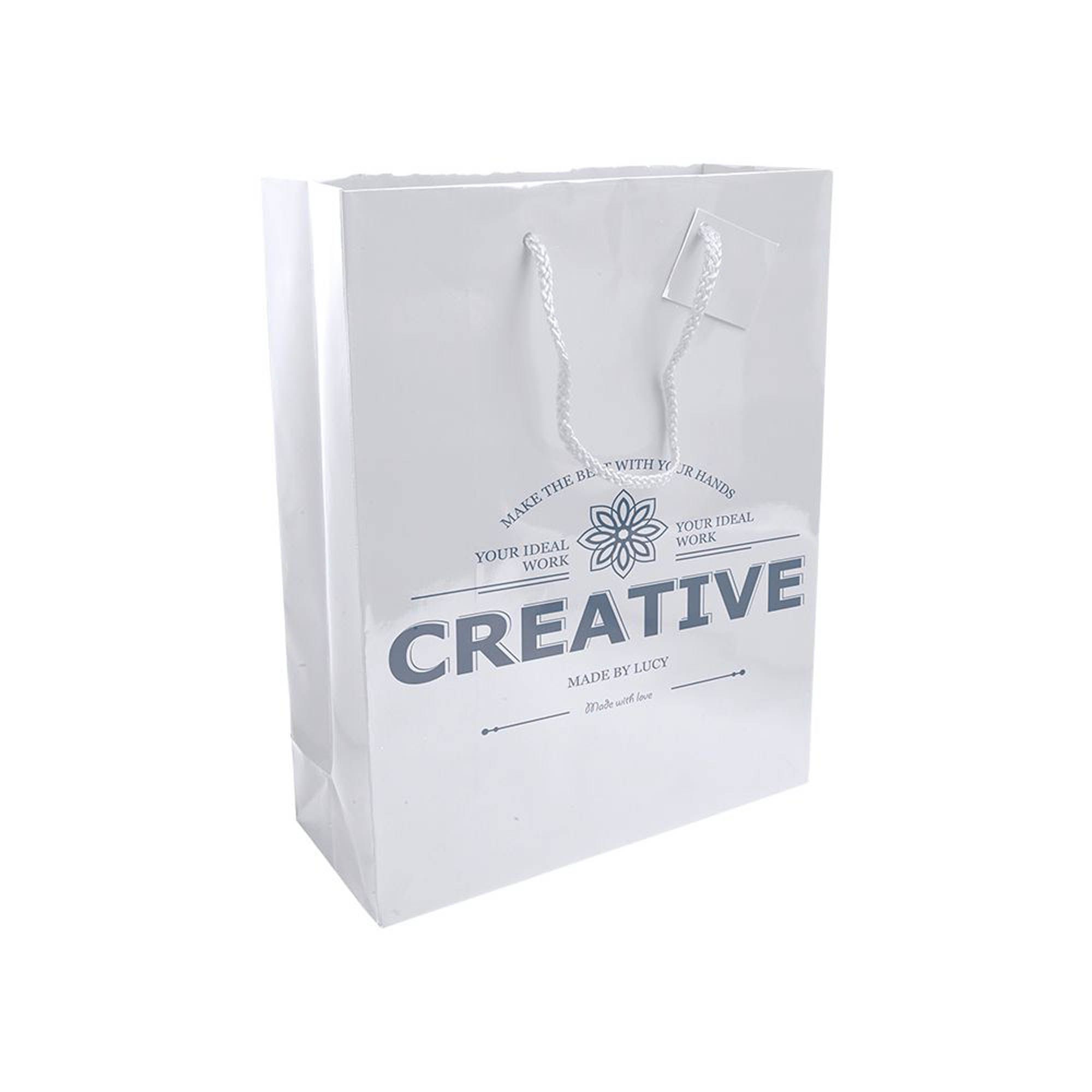 Shopper con soffietto in carta laminata 157 g/m2 con rinforzo alla base - 15125