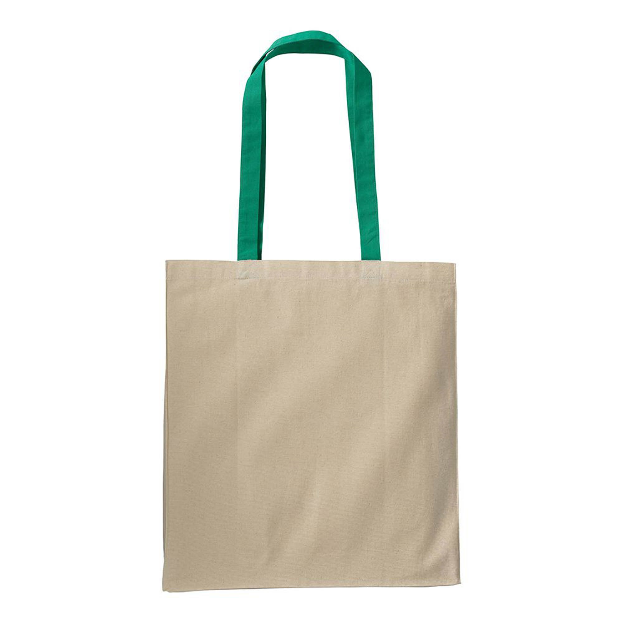 Shopper con soffietto in cotone naturale 220 g/m2, manici lunghi colorati - 17107