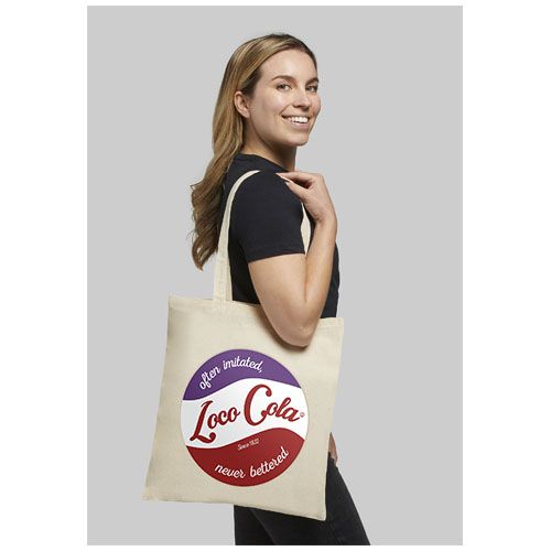 La borsa Madras è la borsa perfetta da regalare durante un evento, una conferenza o da usare come borsa per la spesa. La densità del cotone di 140 g/m² rende la borsa robusta, duratura e adatta a trasportare oggetti pesanti nello scomparto principale. Grazie ai manici a spalla lunghi 30 cm, questa borsa tote è facile da portare in giro. Realizzata in India e certificata OEKO-Tex. Resistenza fino a 5 kg di peso.