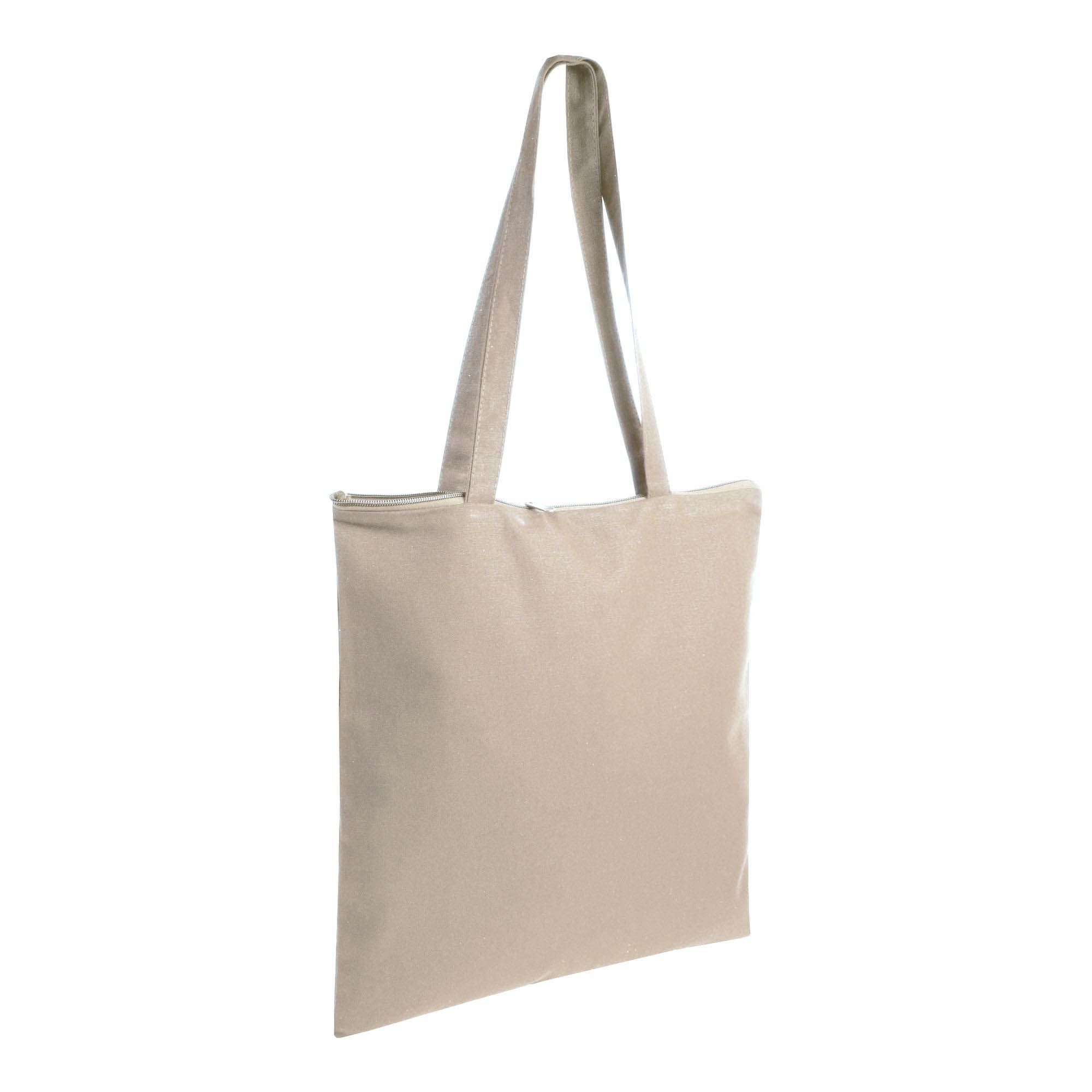 Shopper in cotone 220 g/m2, manici lunghi e chiusura con zip - 1112422
