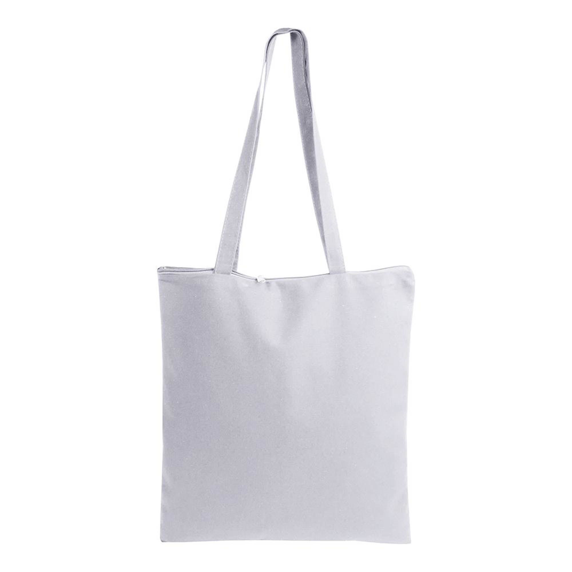 Shopper in cotone 220 g/m2, manici lunghi e chiusura con zip - Il colore bianco potrebbe subire un leggero calo di peso rispetto al valore indicato, dovuto al candeggio cui viene sottoposto