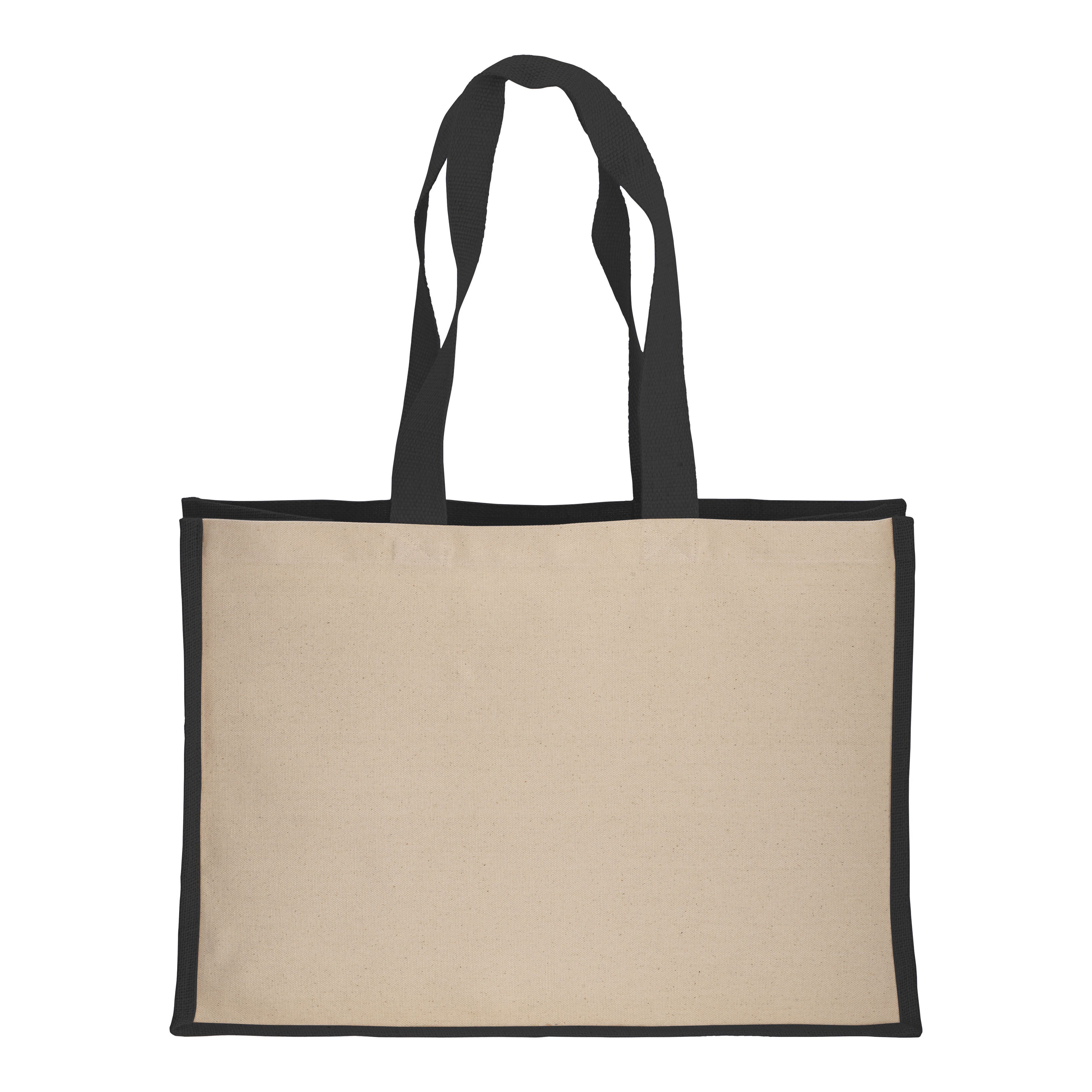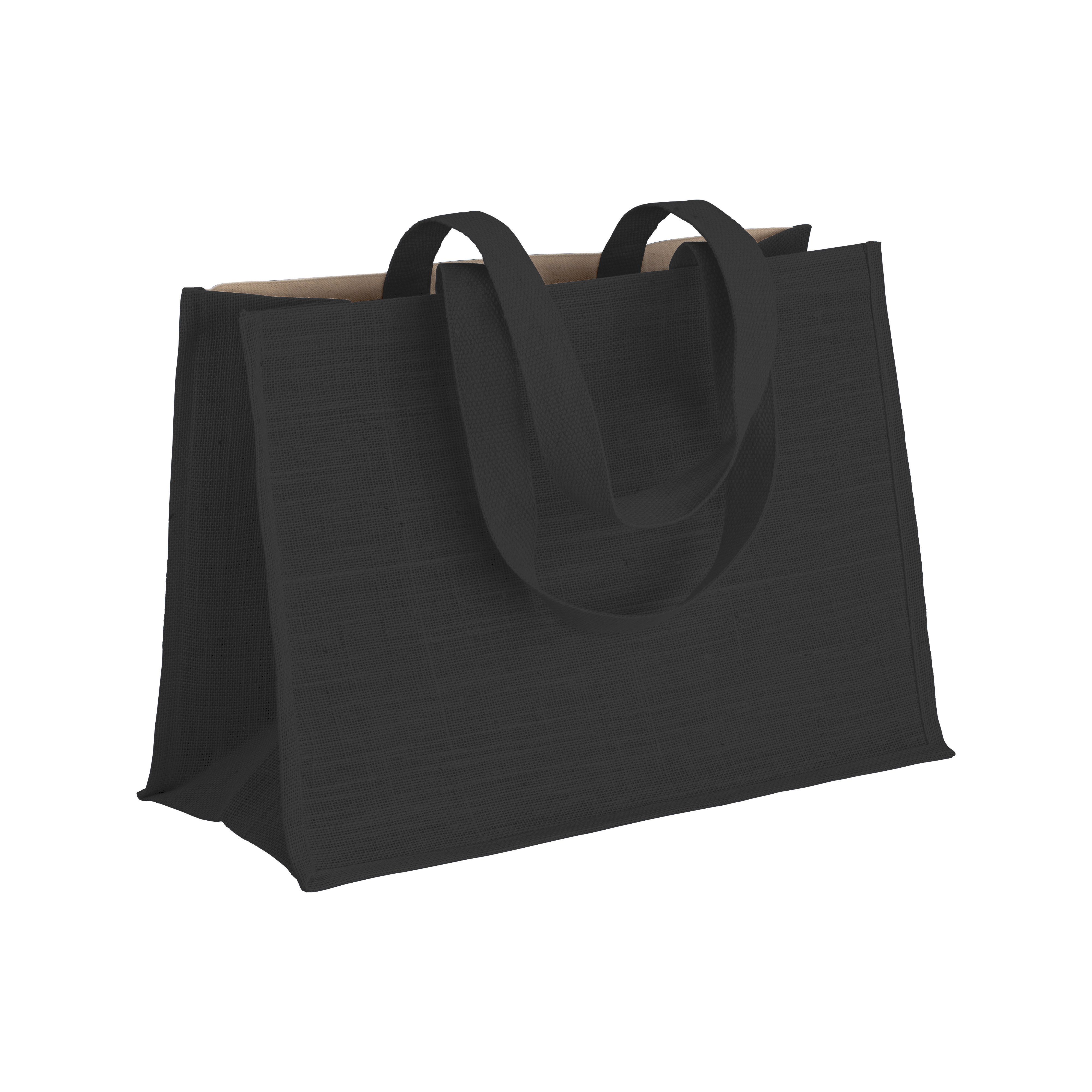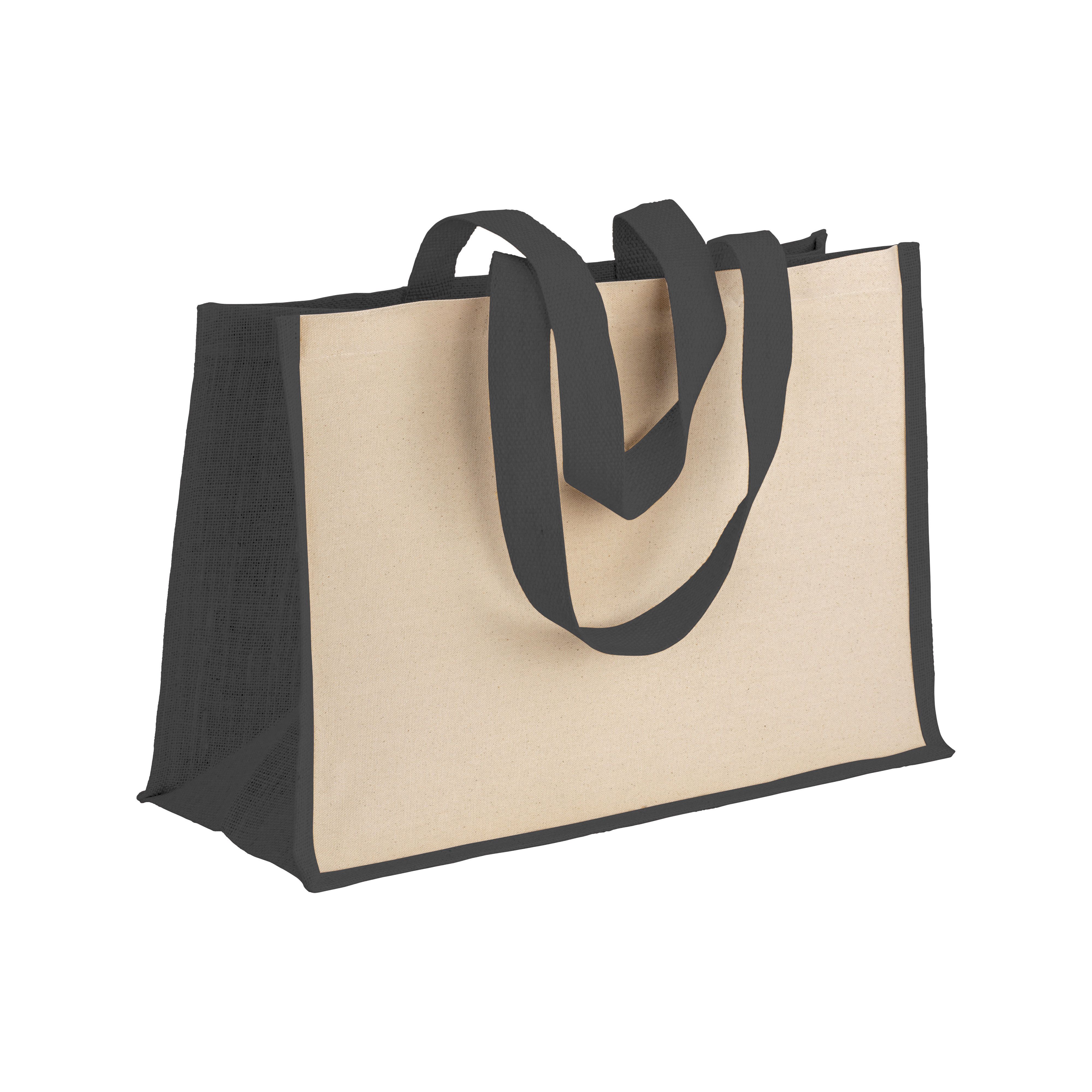 Shopper in cotone 280 g/m2 con soffietto dettagli in juta, manici lunghi - 22125