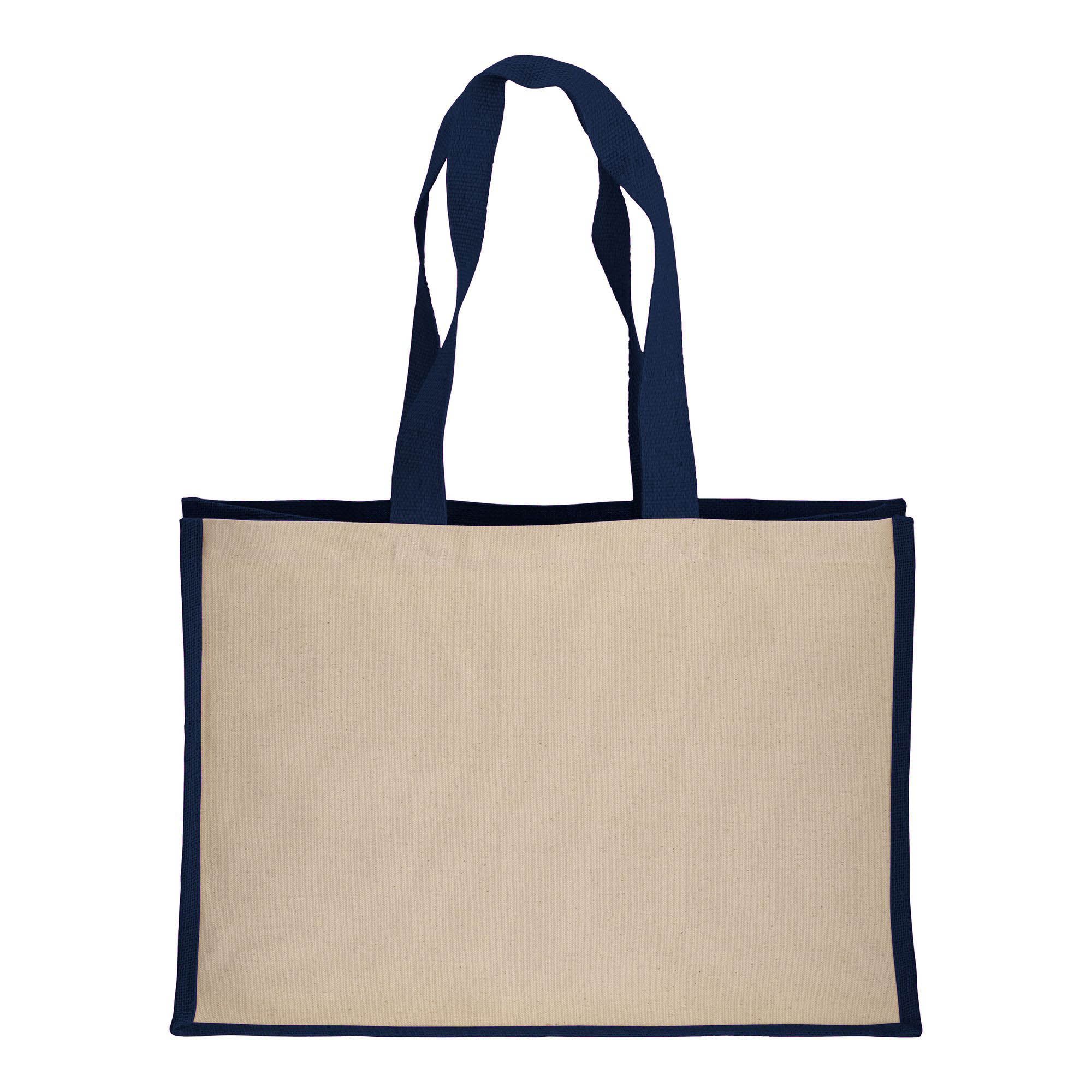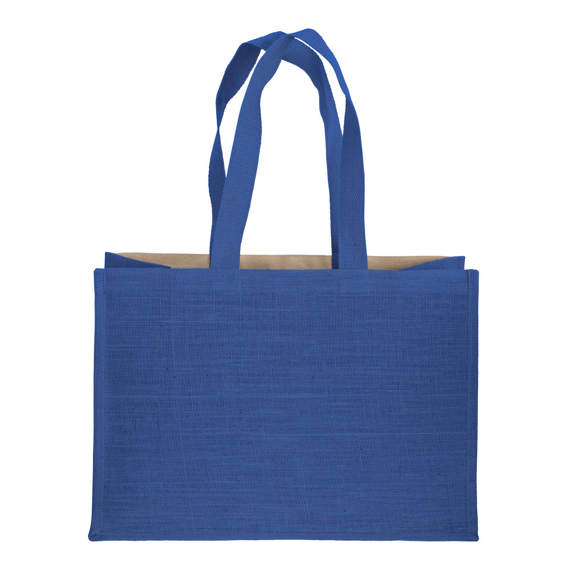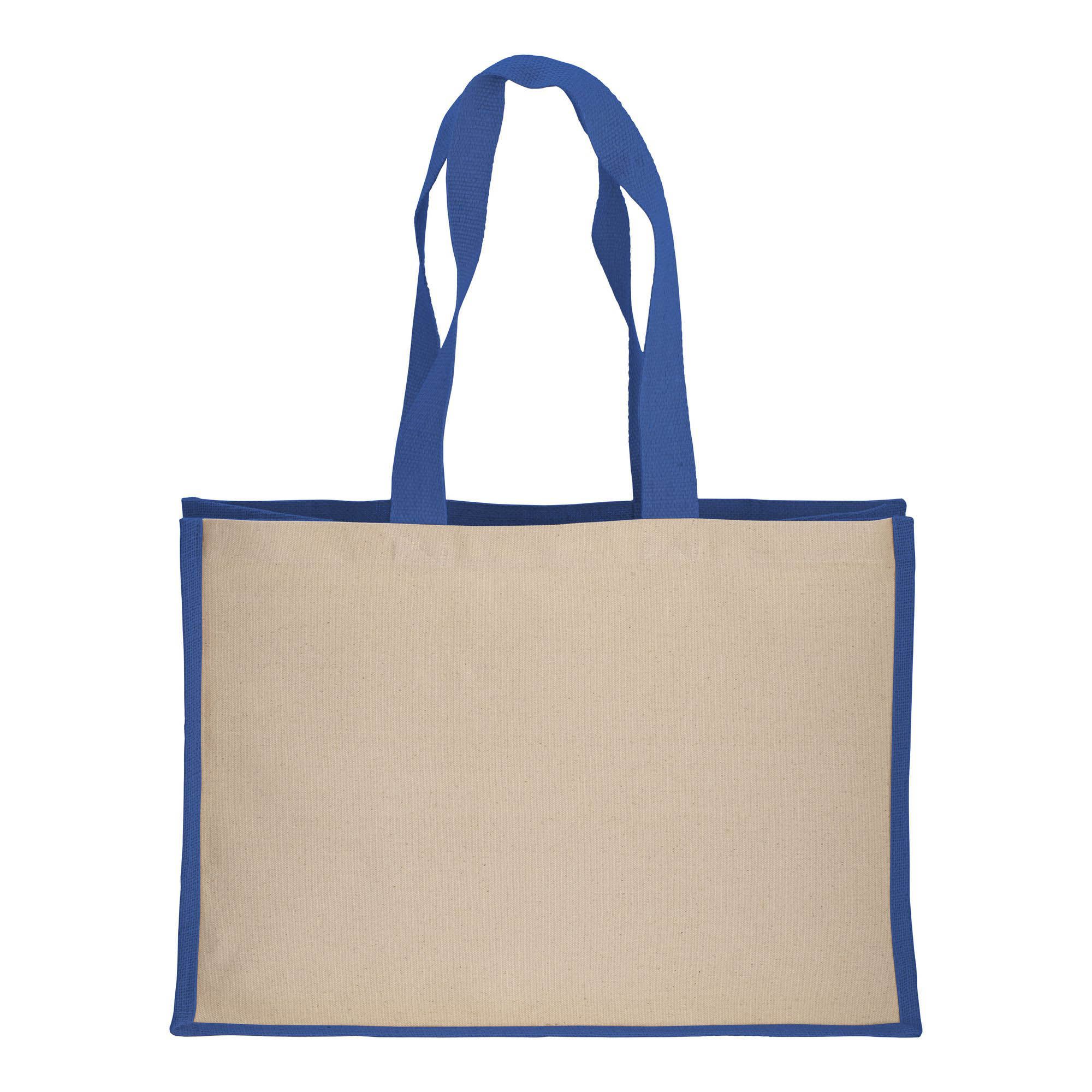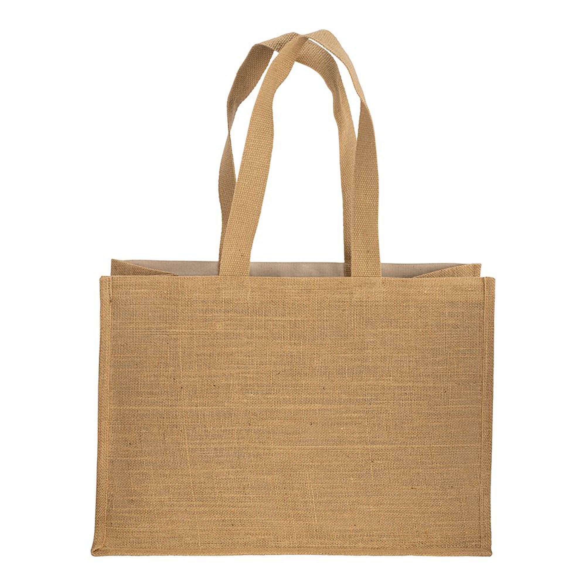 Shopper in cotone 280 g/m2 con soffietto dettagli in juta, manici lunghi - 22125