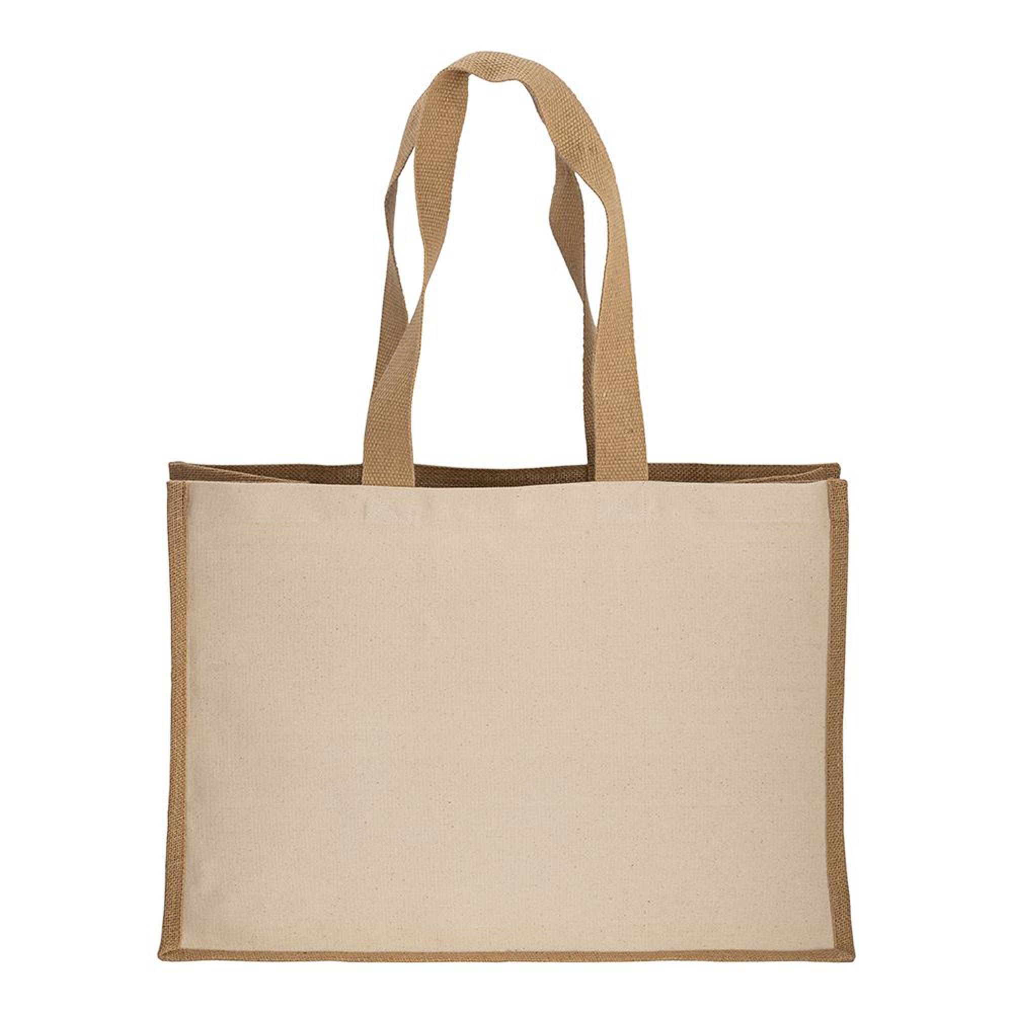 Shopper in cotone 280 g/m2 con soffietto, retro, manici e orlo in juta, manici lunghi - 2212522