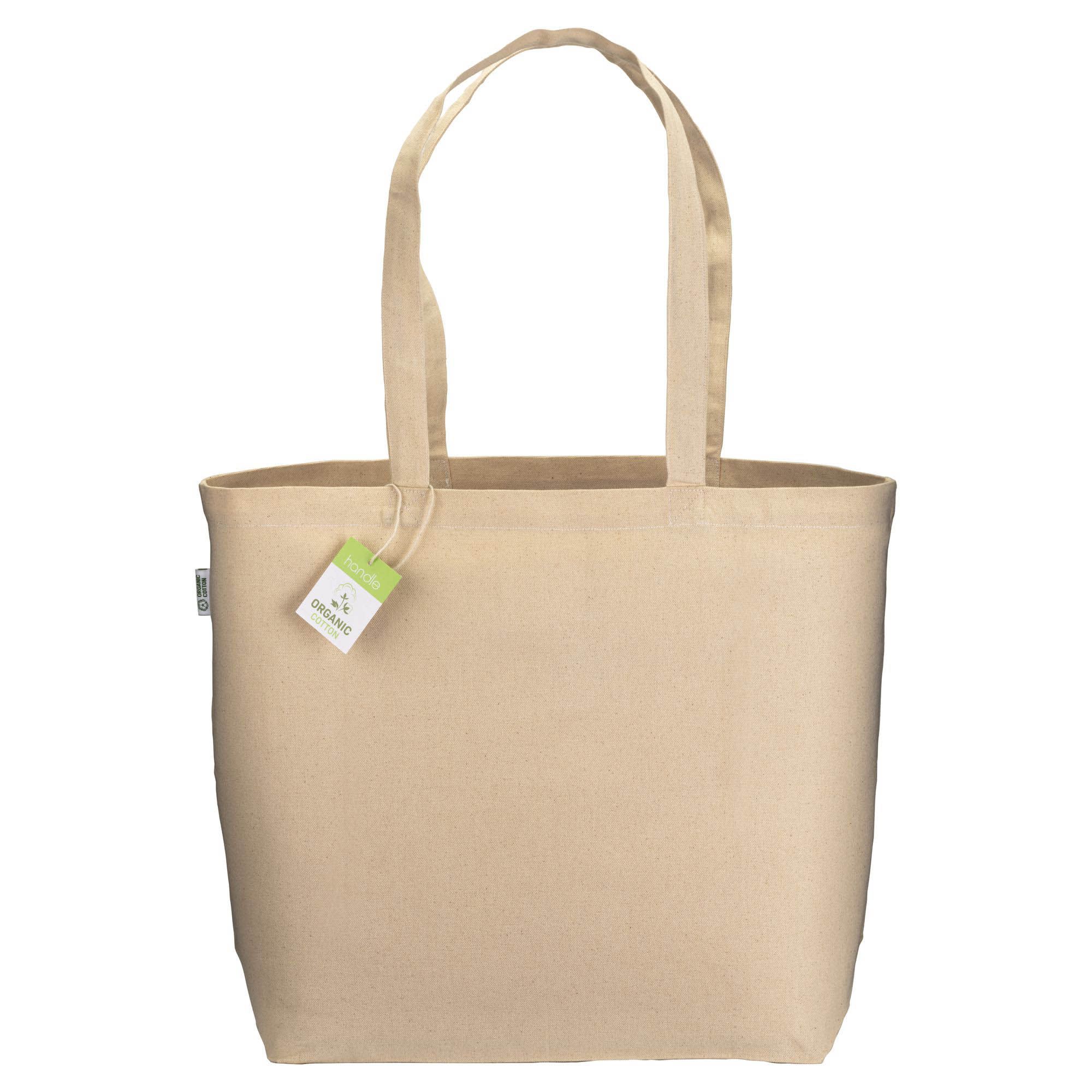 Shopper in cotone biologico 220 g/m2, con manici lunghi e soffietto alla base - 24119