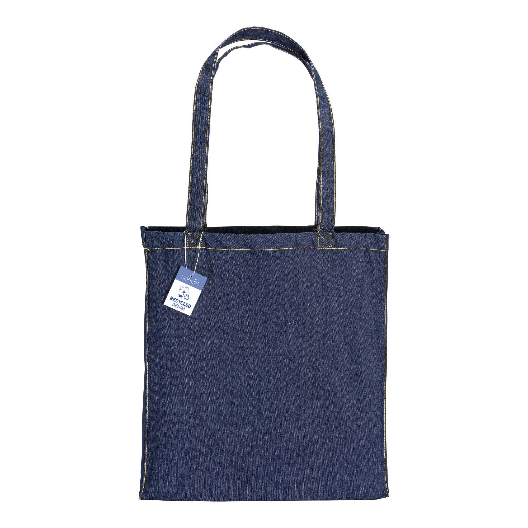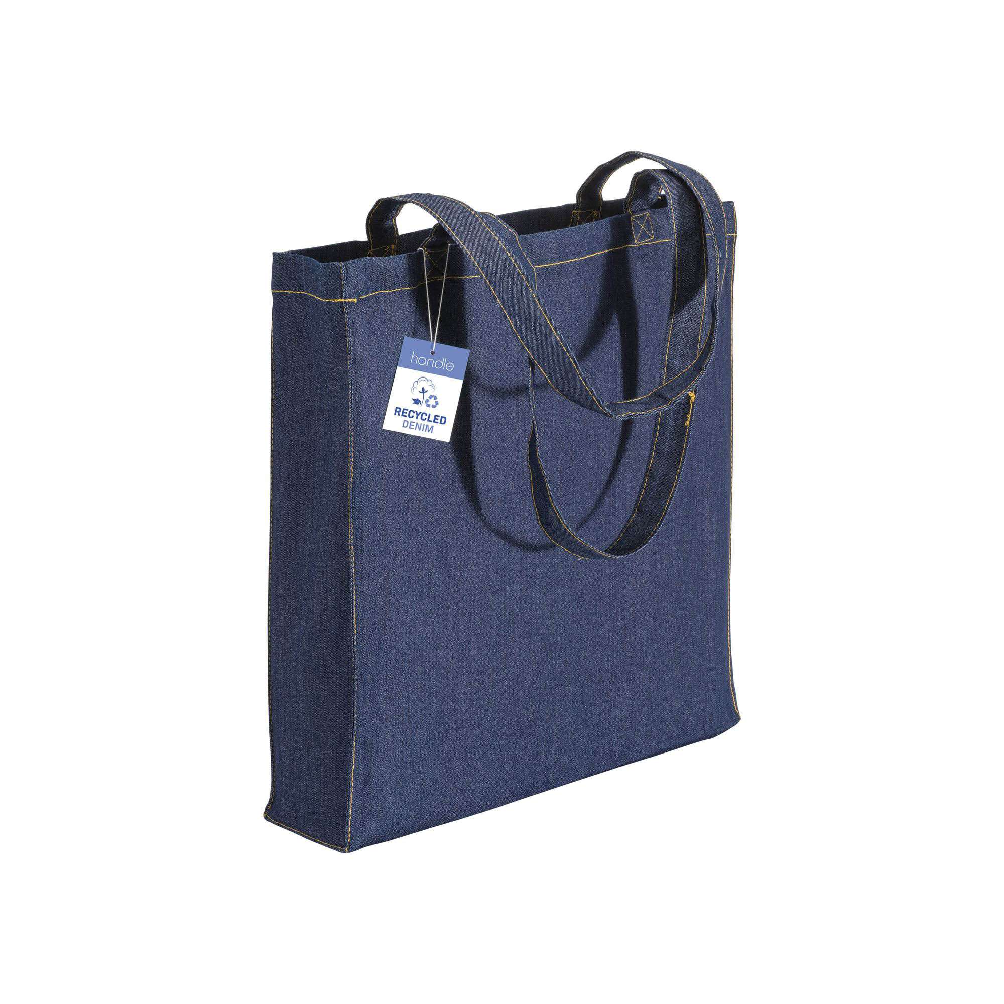 Shopper in cotone denim riciclato 180 gr/m2, manici lunghi e soffietto