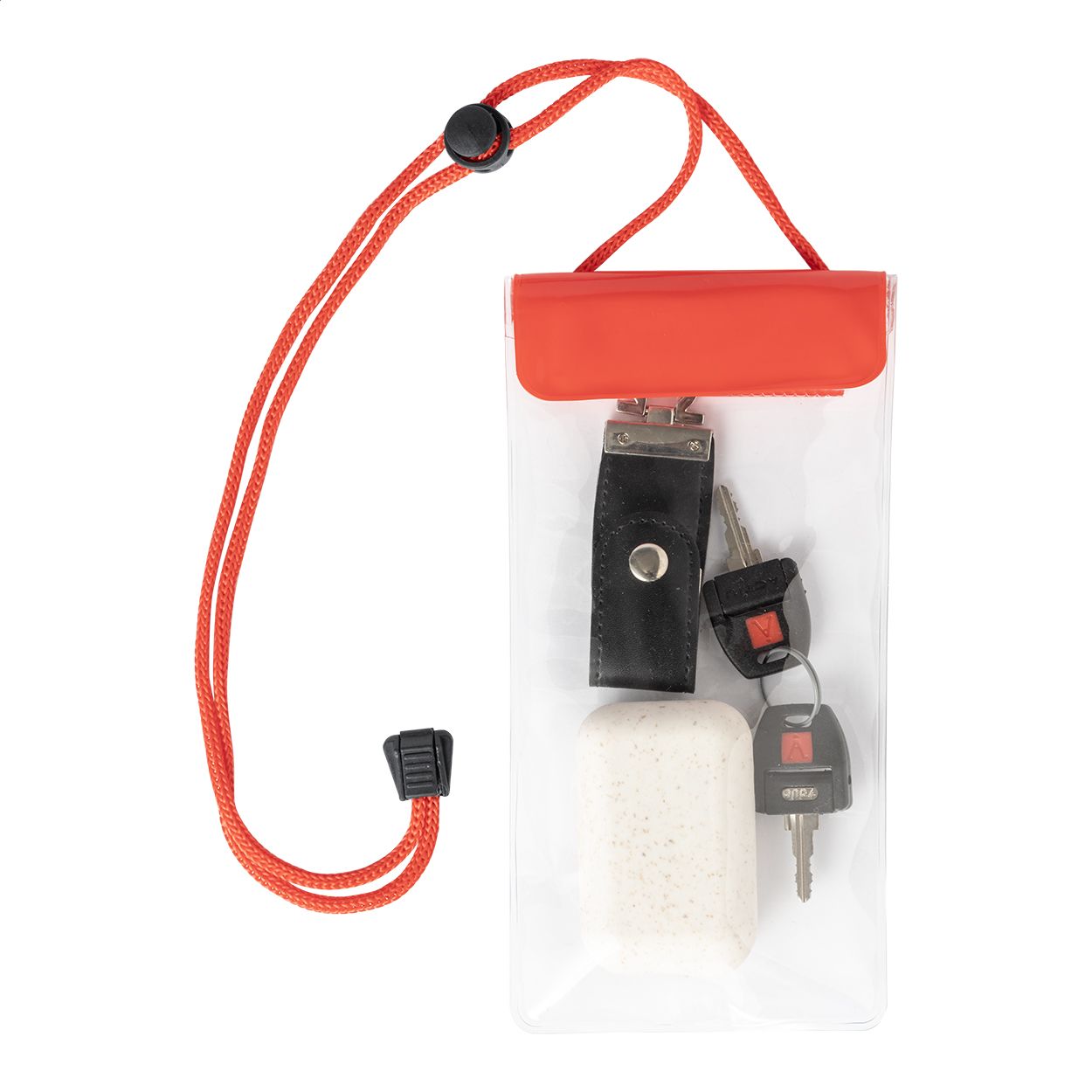 Custodia impermeabile in PVC per cellulari con schermo capacitivo e laccetto in colore coordinato. Ideale per telefoni cellulari con schermo fino a 6,5 pollici.