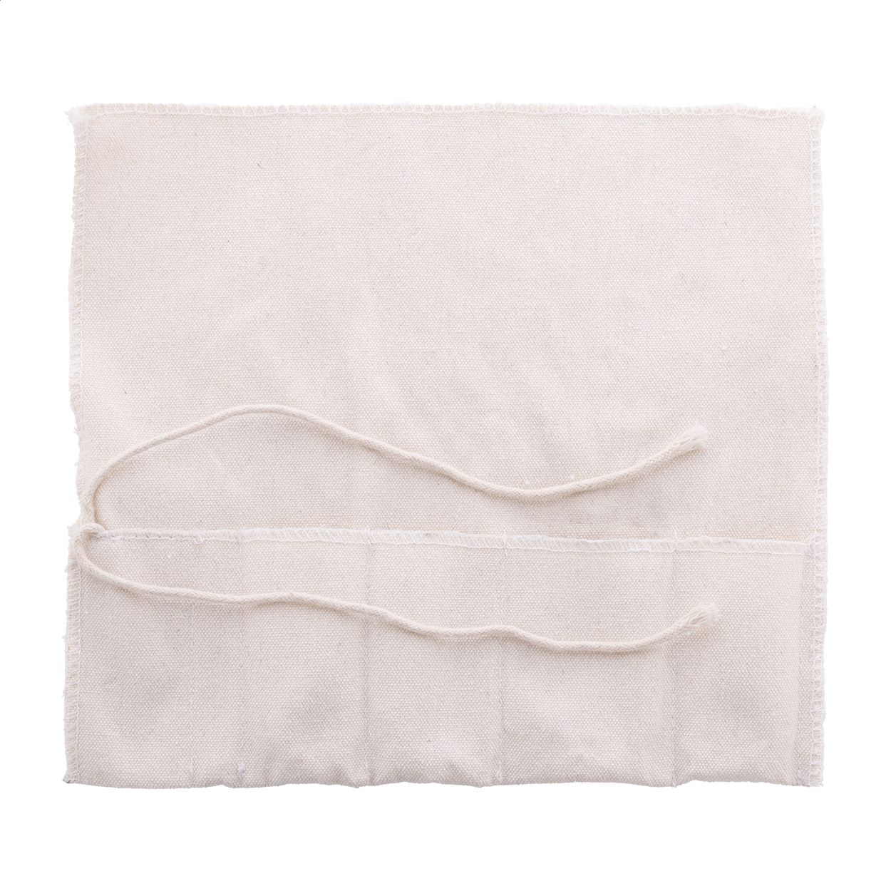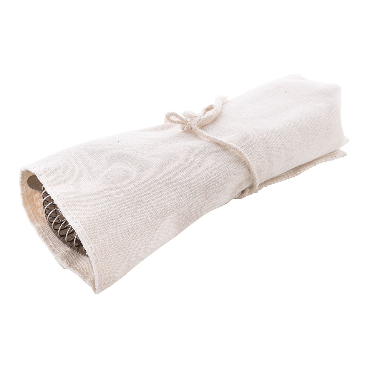 Set da cocktail composto da 5 pezzi contenuti in una pratica confezione avvolgibile in cotone.Il set comprende: un jigger, un colino, un cucchiaio da bar in acciaio inox, un cavatappi con manico in legno ed un pestello in legno.