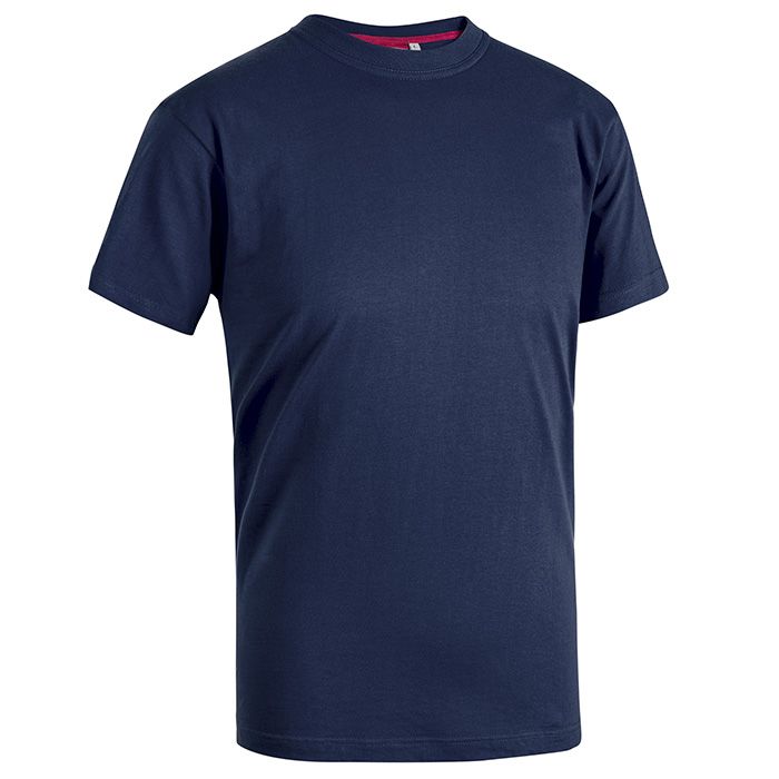 100% cotone jersey semi pettinato, colore gs: 85% cotone, 15% viscosa, colore g: 98% cotone, 2% viscosa, 145/150 g/m2, xs s m l xl xxl 3xl 4xl regular fit, parasudore da spalla a spalla, collo in doppio rib, etichetta staccabile