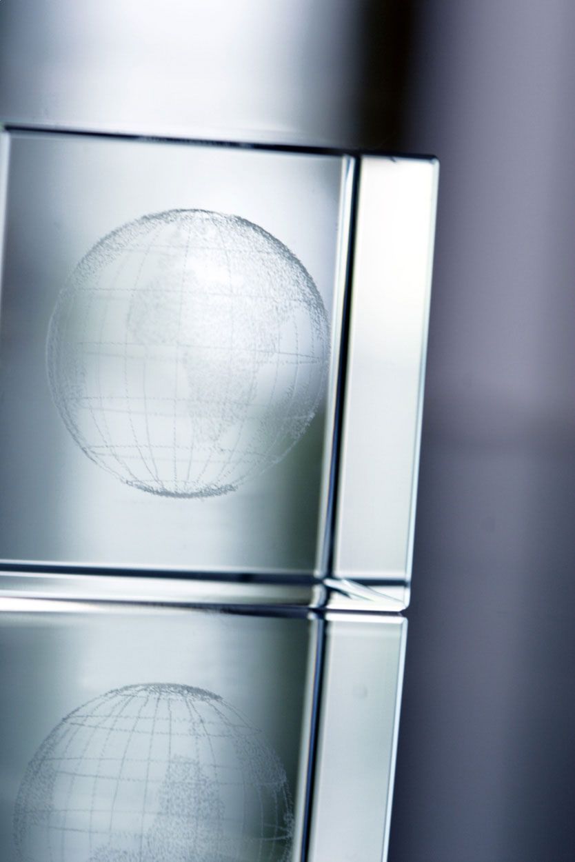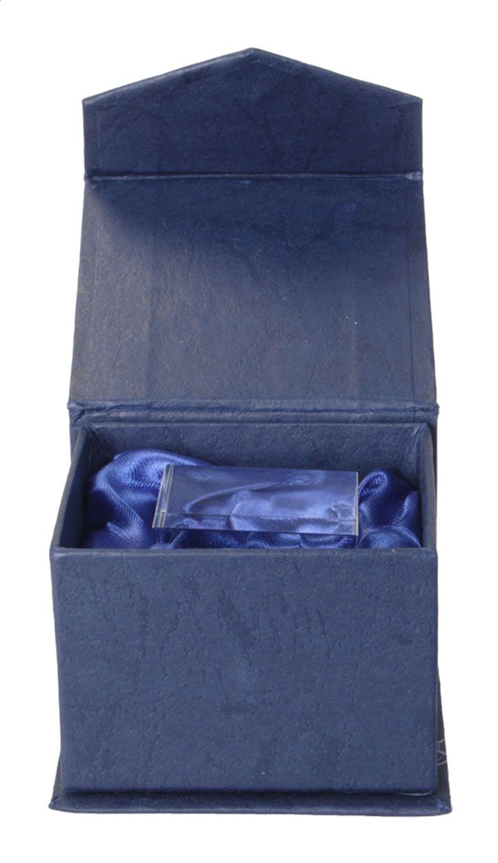 Cubo in vetro. Consegnato in confezione regalo di cartoncino blu con inserto in seta e chiusura magnetica.
