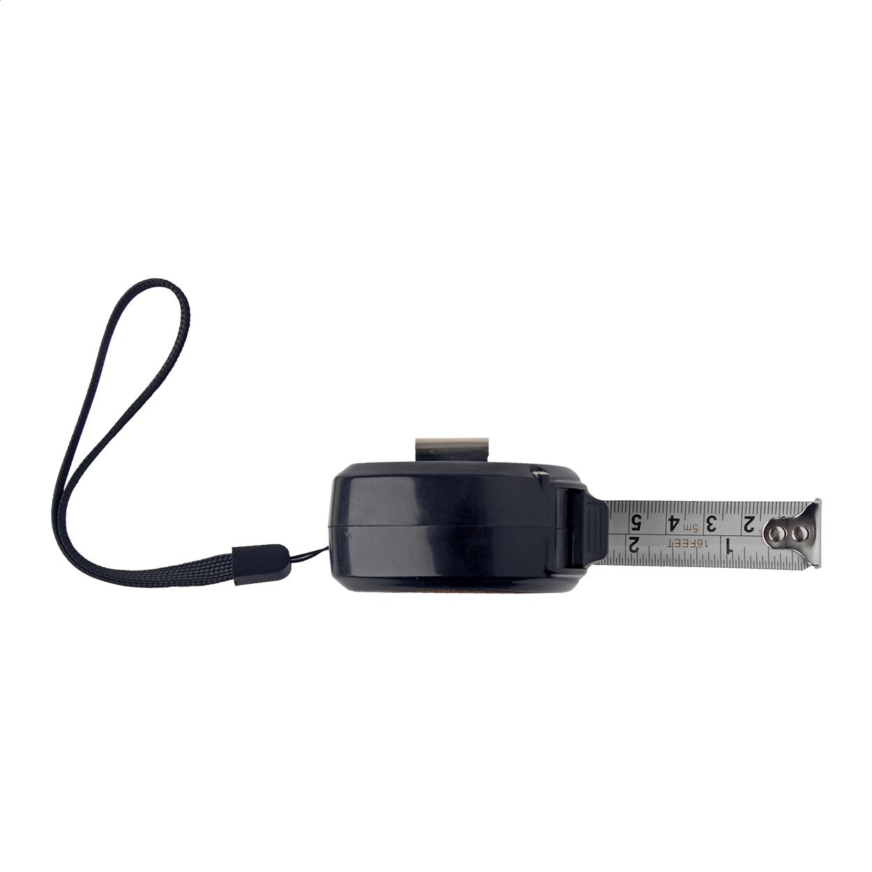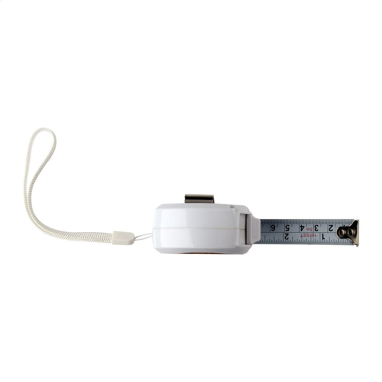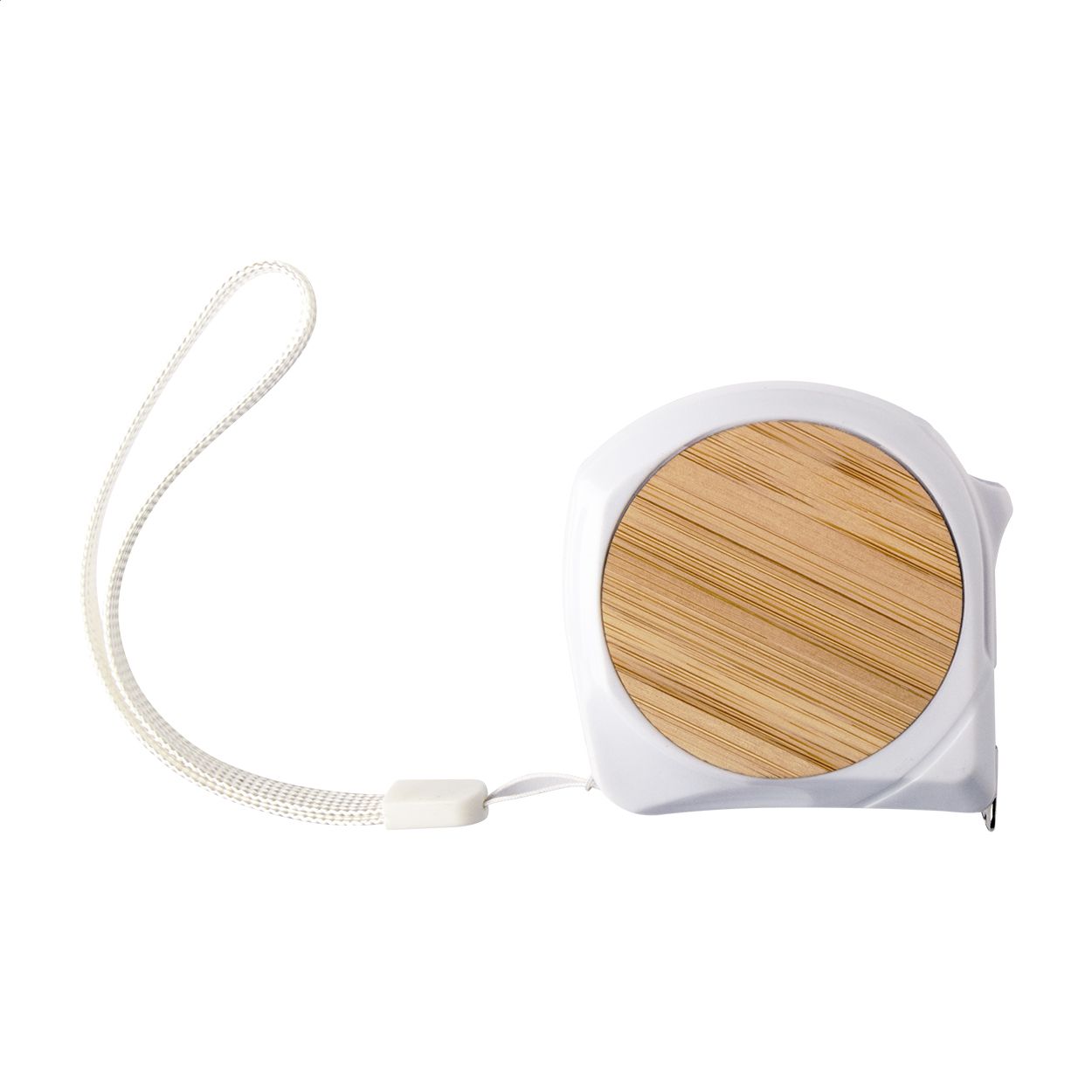 Flessometro in plastica e bambù con funzione di blocco, clip in metallo e laccetto, 5 m.