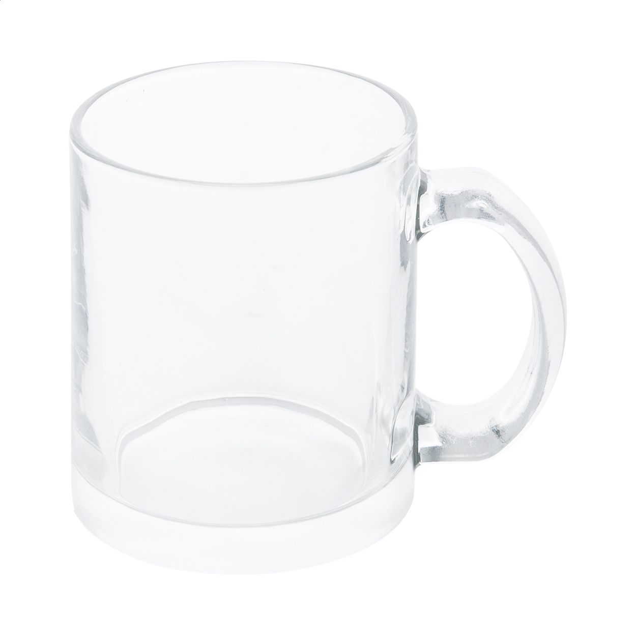 Tazza mug in vetro da 300 ml. lavabile in lavastoviglie, personalizzabile in sublimazione.