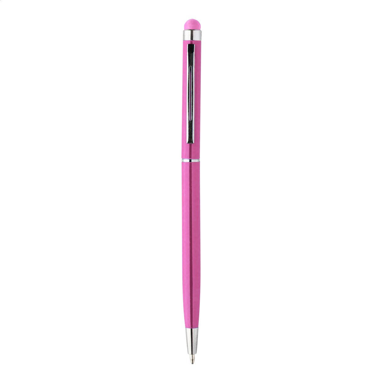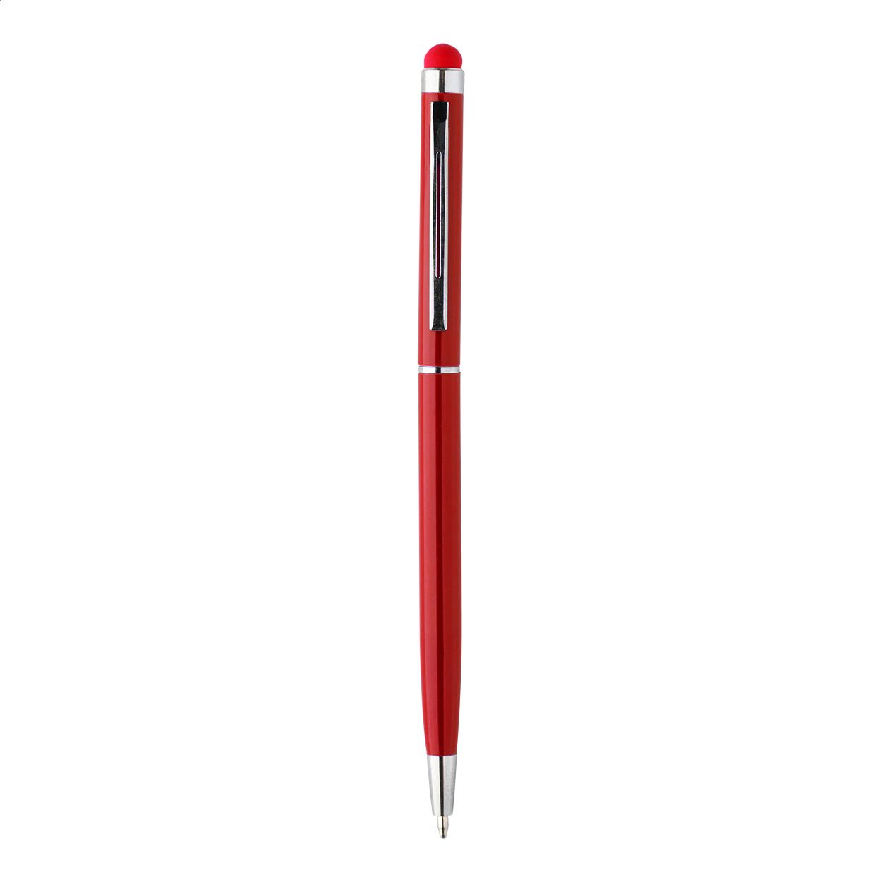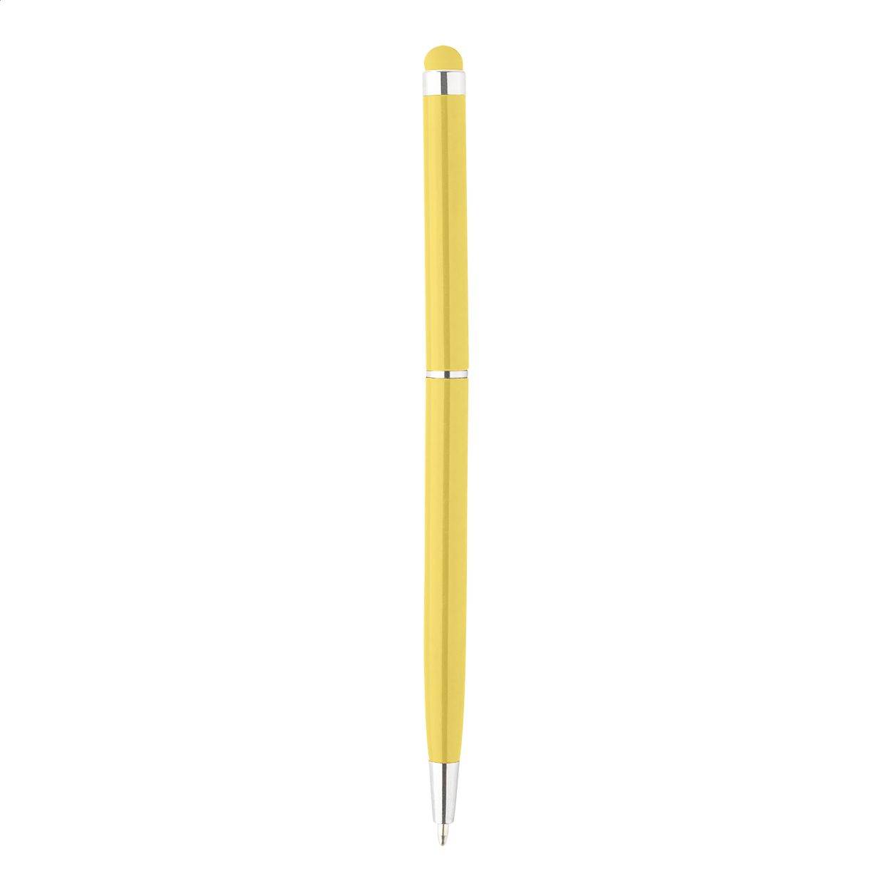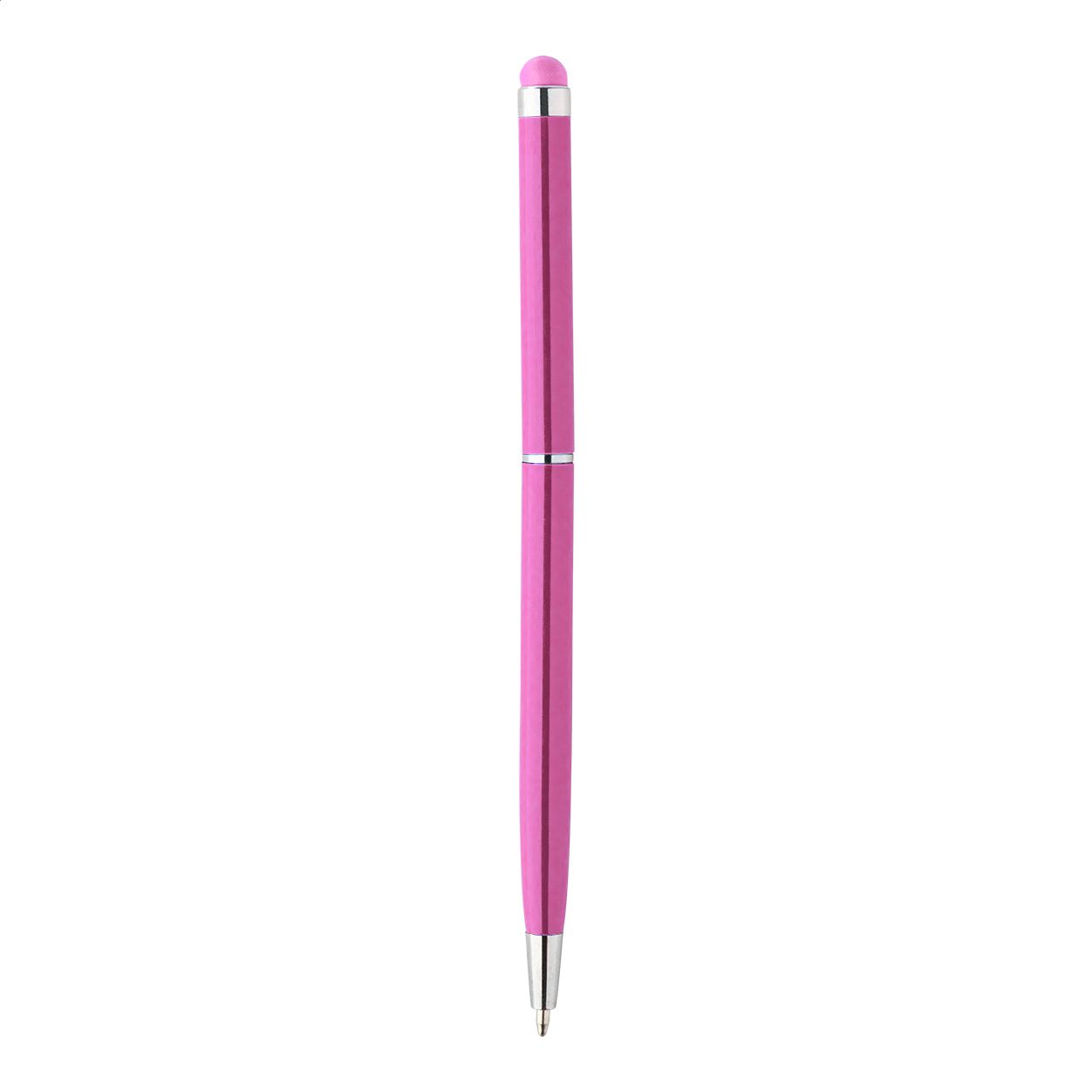 Penna a sfera in alluminio colorato con gommino capacitivo in colore coordinato e refill blu.