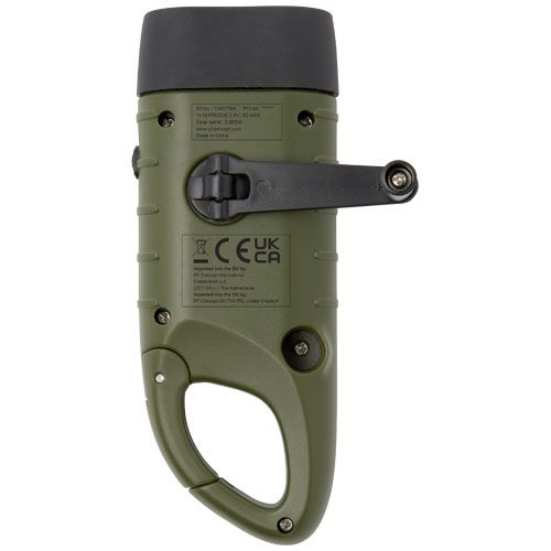 Torcia a dinamo solare con moschettone in plastica riciclata Helios - 104575