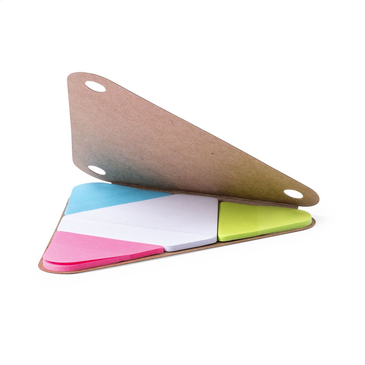 Blocchetto note di forma triangolare, in cartone riciclato con note adesive di 2 misure: 20 di forma esagonale e 60 triangolare.