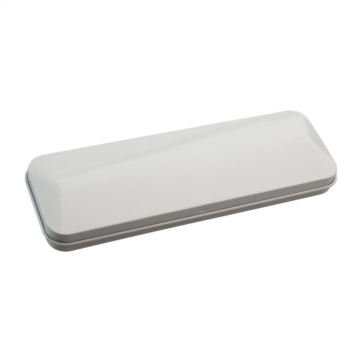 Set penna a sfera in alluminio e matita meccanica (mina 0,7 mm) in confezione di metallo e refill blu.
