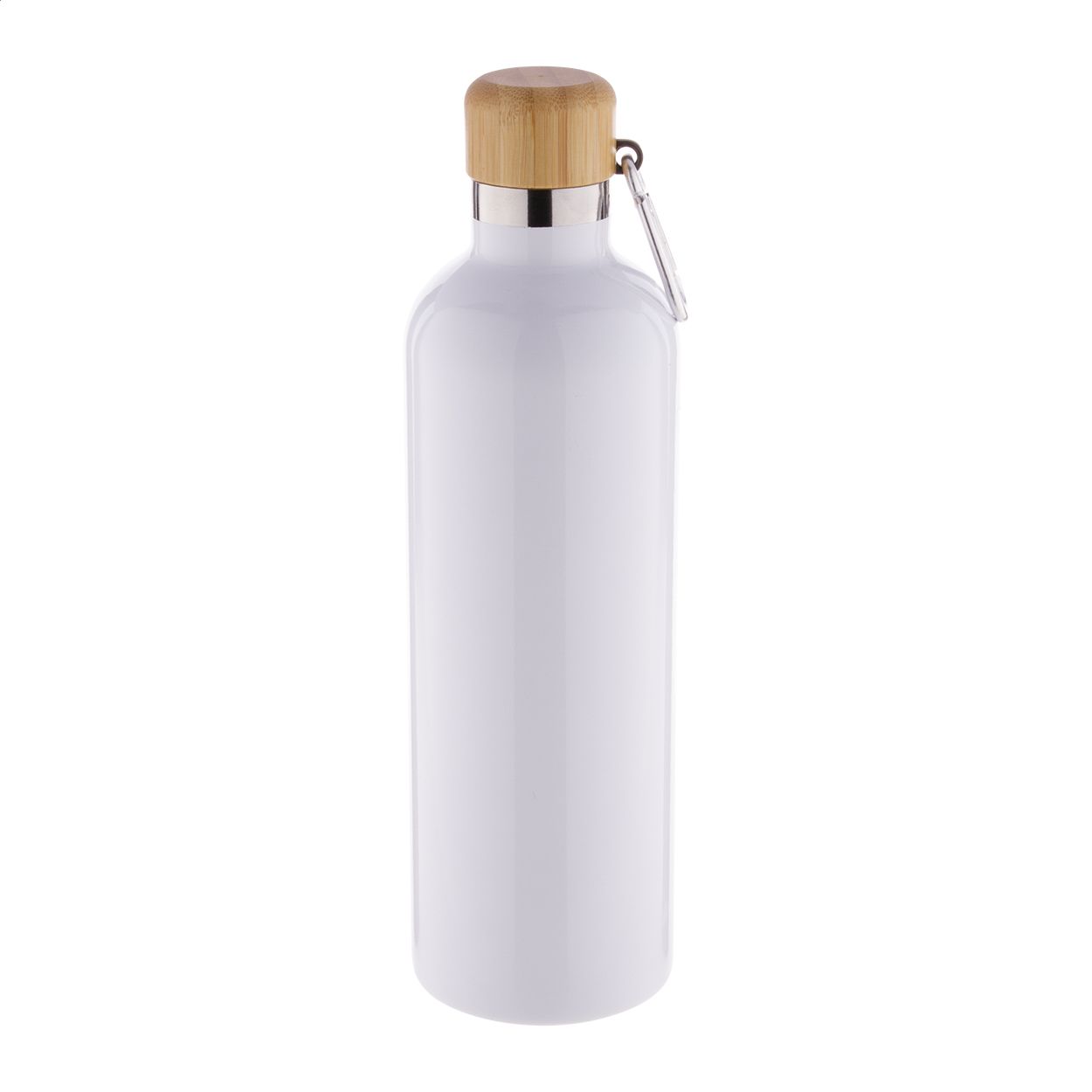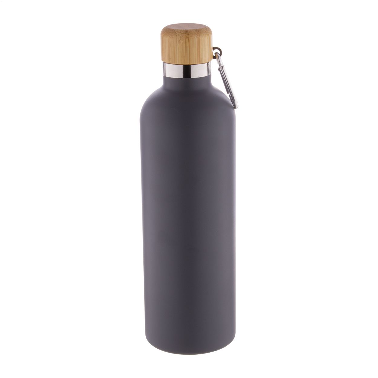 Borraccia termica da 500ml. in acciaio a doppia parete con tappo in bambù e moschettone.