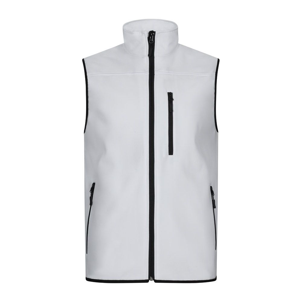 Gilet soft shell (280g/m²), con fodera in pile, in poliestere (94%) e elastan (6%). Con zip centrale invertita. Contiene 3 tasche con zip invertita. Taglia: XS, S, M, L, XL, 2XL, 3XL