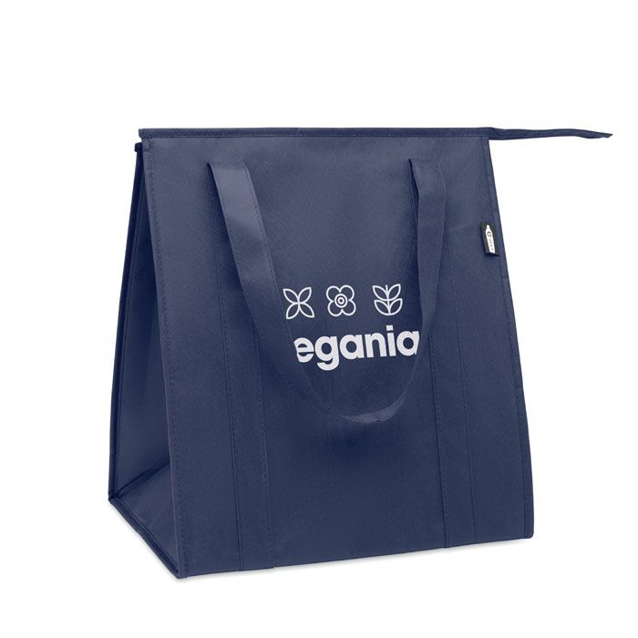 Borsa frigo in tessuto non tessuto RPET 80gr/m². Materiale di isolamento: foglio di alluminio. Capacità 25L. Scomparto principale con cerniera in alto.